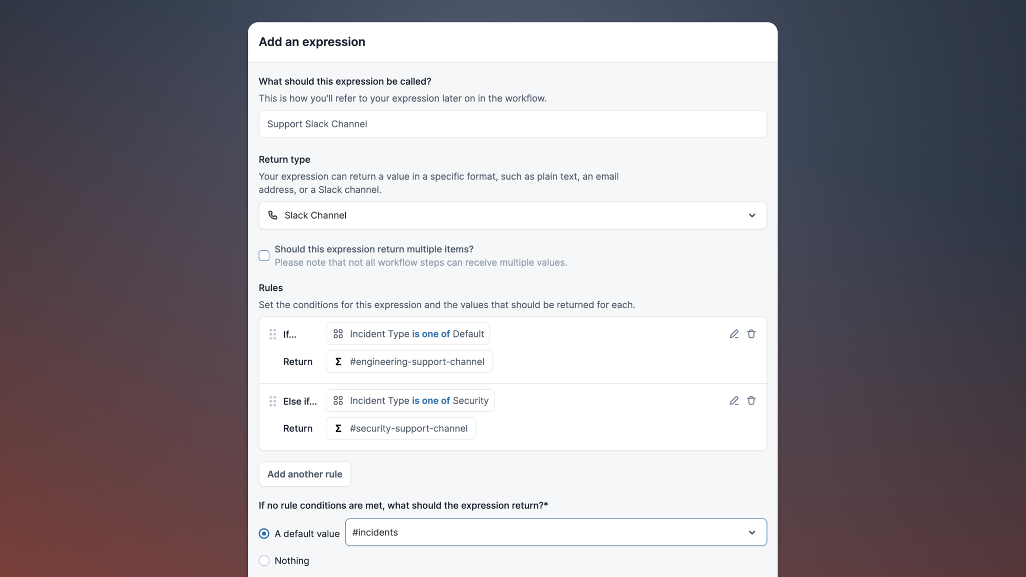 Clicking 'Add new expression' will prompt you to choose what type of thing the expression returns, and the conditions that determine that value.