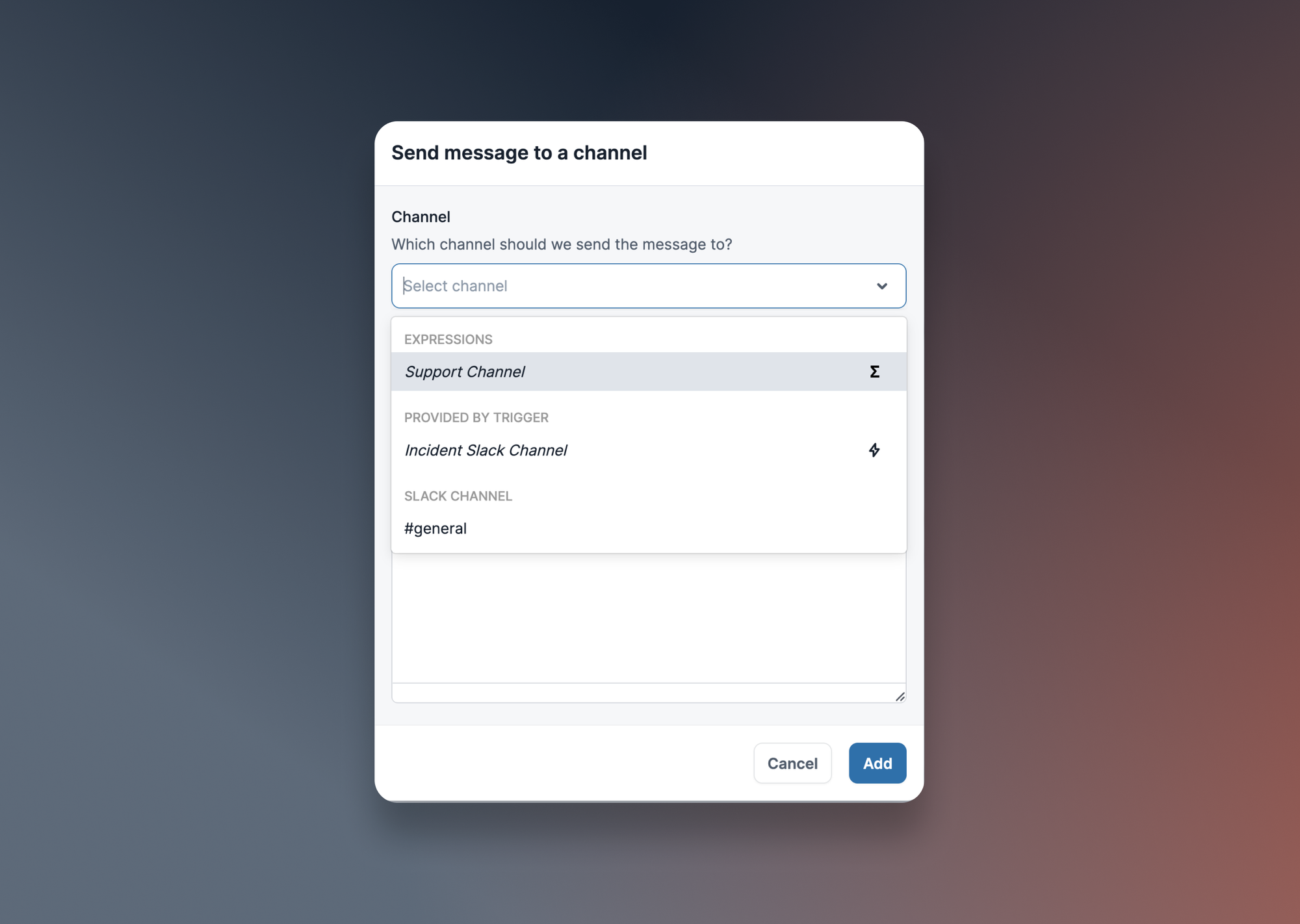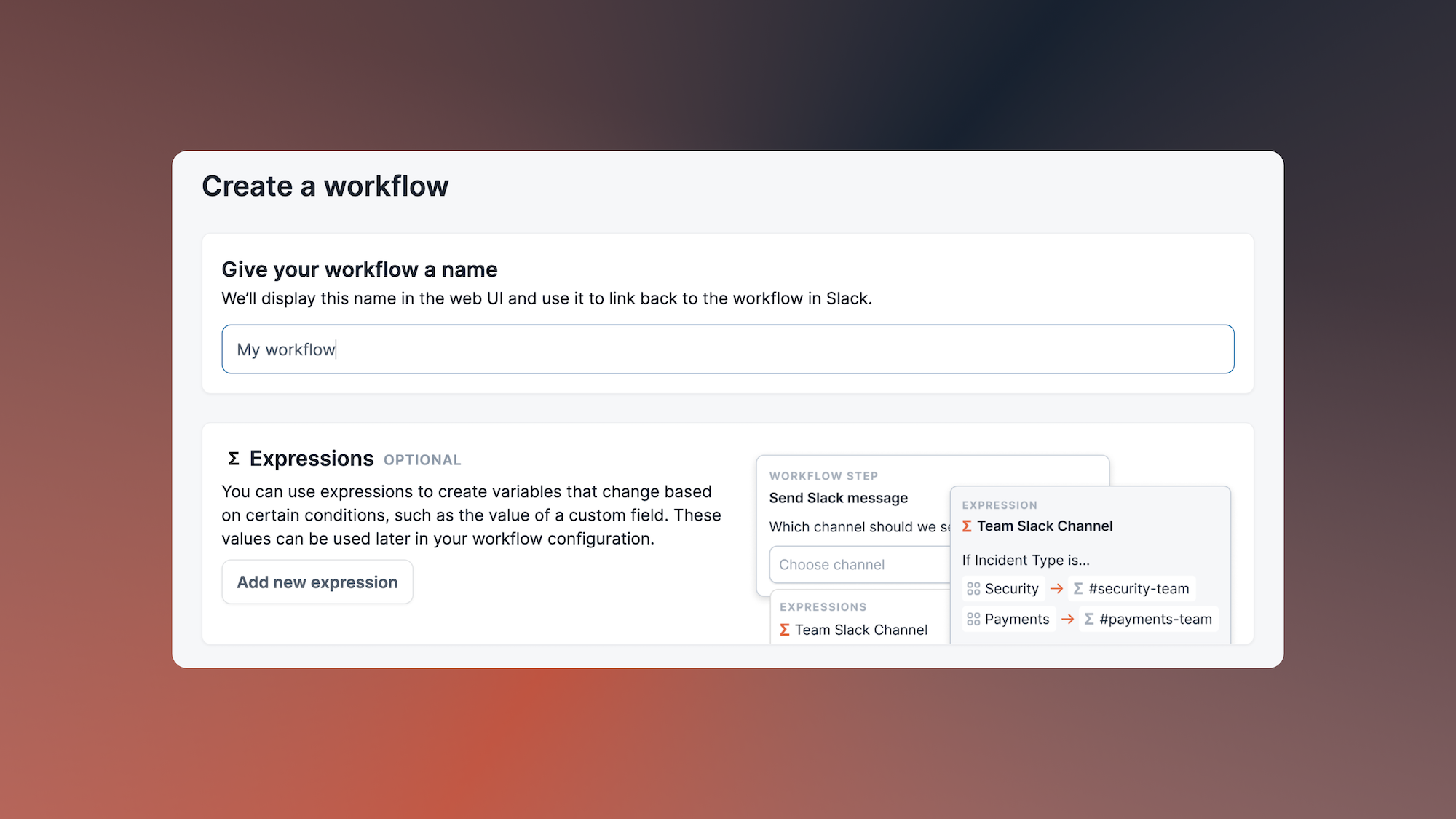To get started with expressions, head over to Workflows in the web dashboard, create or edit a Workflow, and click on the new Add new expression button.