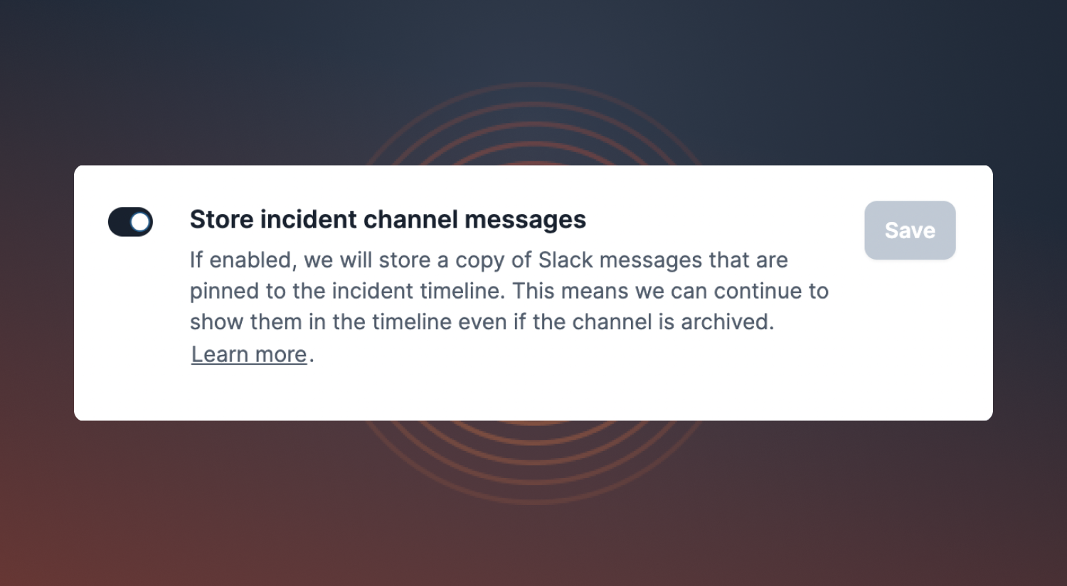 Alongside this, we've also added the ability for Slack messages from incident channels to be optionally stored so that they will continue to appear in the timeline after a channel is archived.