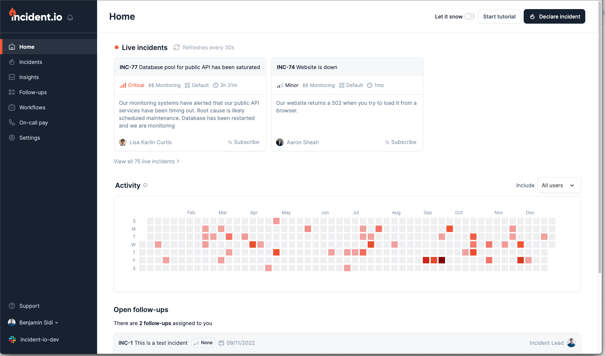 👀 We've also added a small christmas present for you in the header. No matter where you are in the world, you'll get some December snow on incident.io ❄️