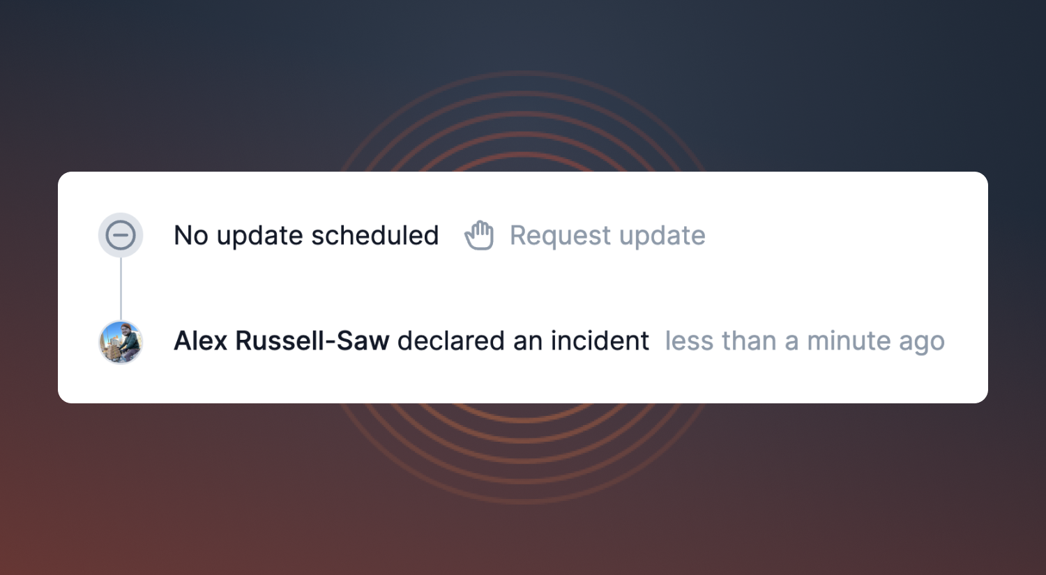 If you visit an incident on the web, you'll find a new 'request update' button. Clicking it will pop a message in Slack asking for an update on the incident. We reckon this will be handy for folks responsible for incidents across an organization, for prompting responders to update an incident that's gone quiet, without having to do the nagging yourself.
