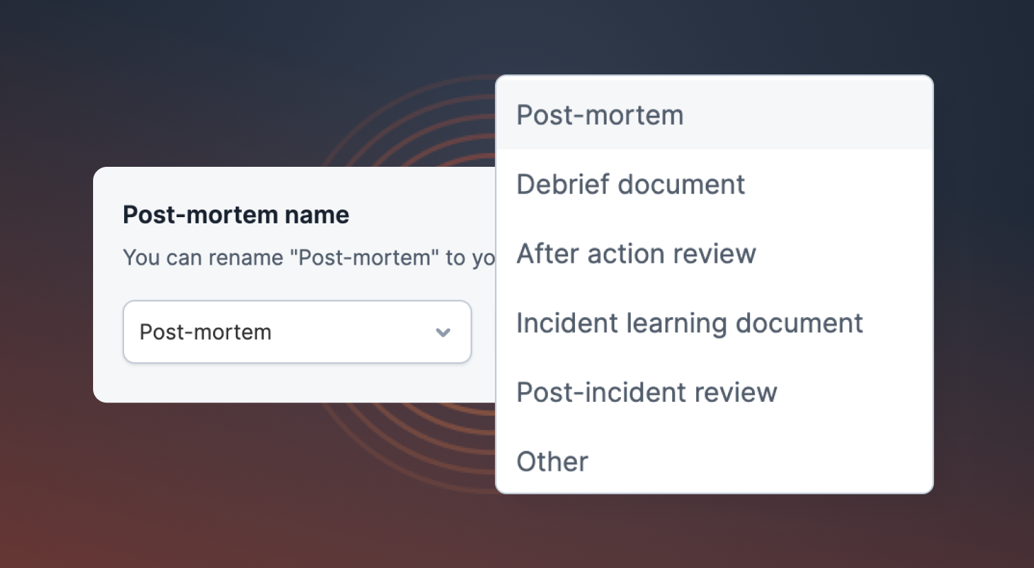 Our settings page now lets you decide how post-mortems are labelled within incident.io. We've picked a few common options for these documents, but you can also specify your own.