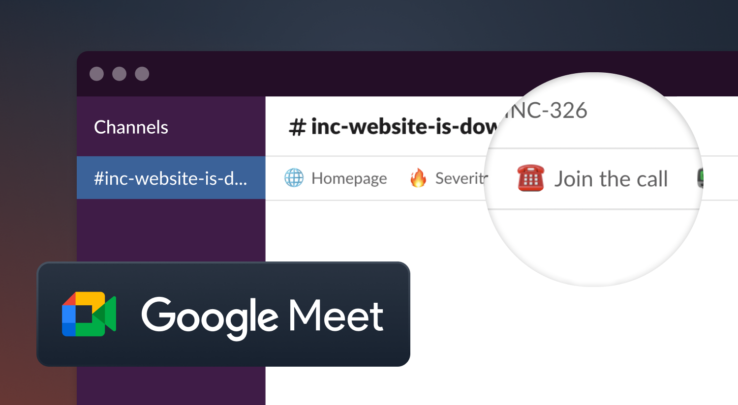 We can automatically create an individual Google Meet call whenever an incident is declared, and attach it to the incident. This helps speed up your incident response, and reduces the burden of manual tasks on responders.