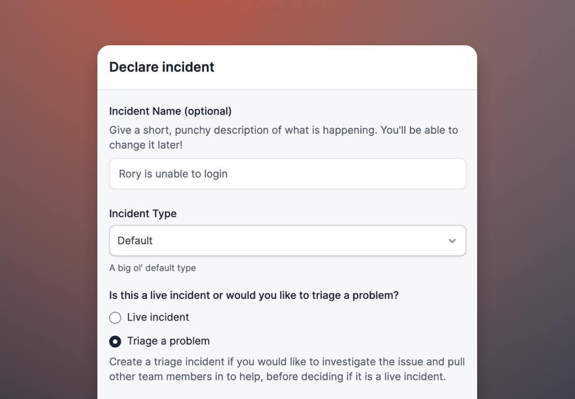 Back in January, we added the ability to create triage incidents manually. These are great for situations where you're not sure if there's a problem yet, and you want a space to collect information and notes, before deciding whether to create a full incident.