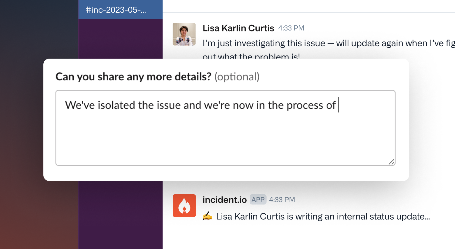 A well-written update can get everyone on the same page when responding to an incident. Writing a good update can take a bit of time, meaning there can be a period of silence as it's written -- often accompanied by people asking for an update.