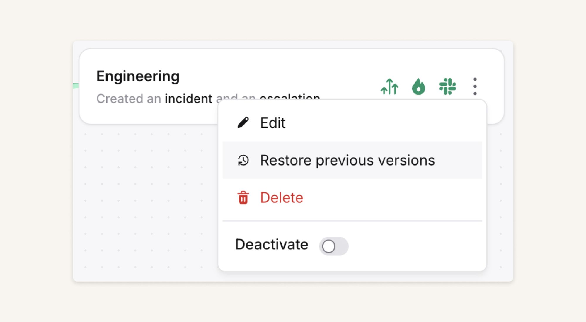 Alert sources and routes are critical components powering your on-call system. So, to provide peace of mind, we now allow you to view and restore previous versions of your alert sources and routes. That way, you can undo any accidental or intentional changes by simply reverting to an older version.