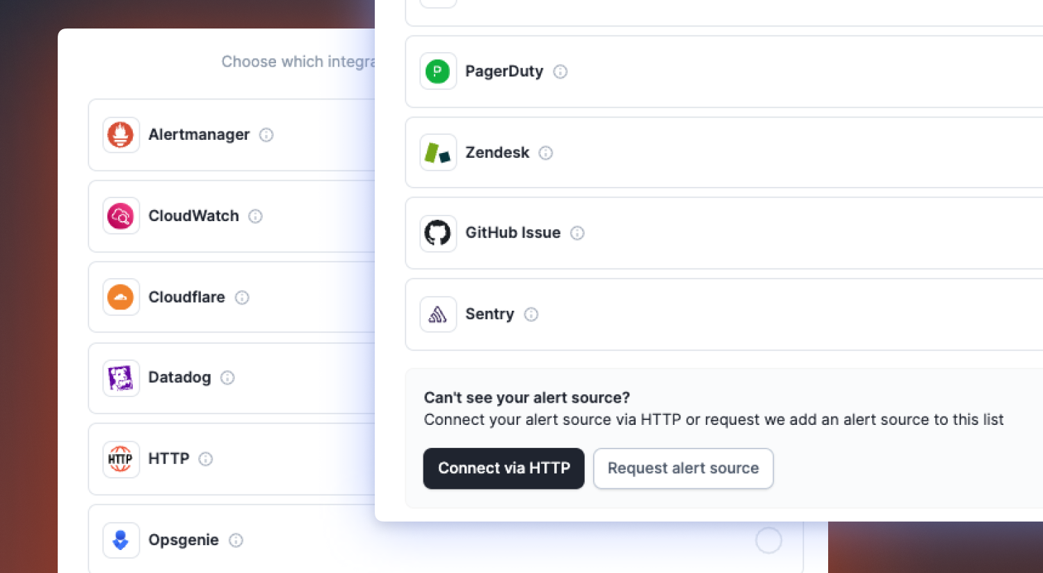 To get started using Alerts, you will need to set up the connection between incident.io and your alert source(s). We connect with a variety of alert sources: