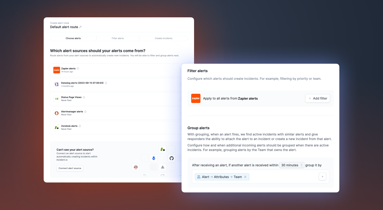 Once you have connected your alert sources, to automatically create incidents, you’ll need to set up your alert routes. With alert routes you can: