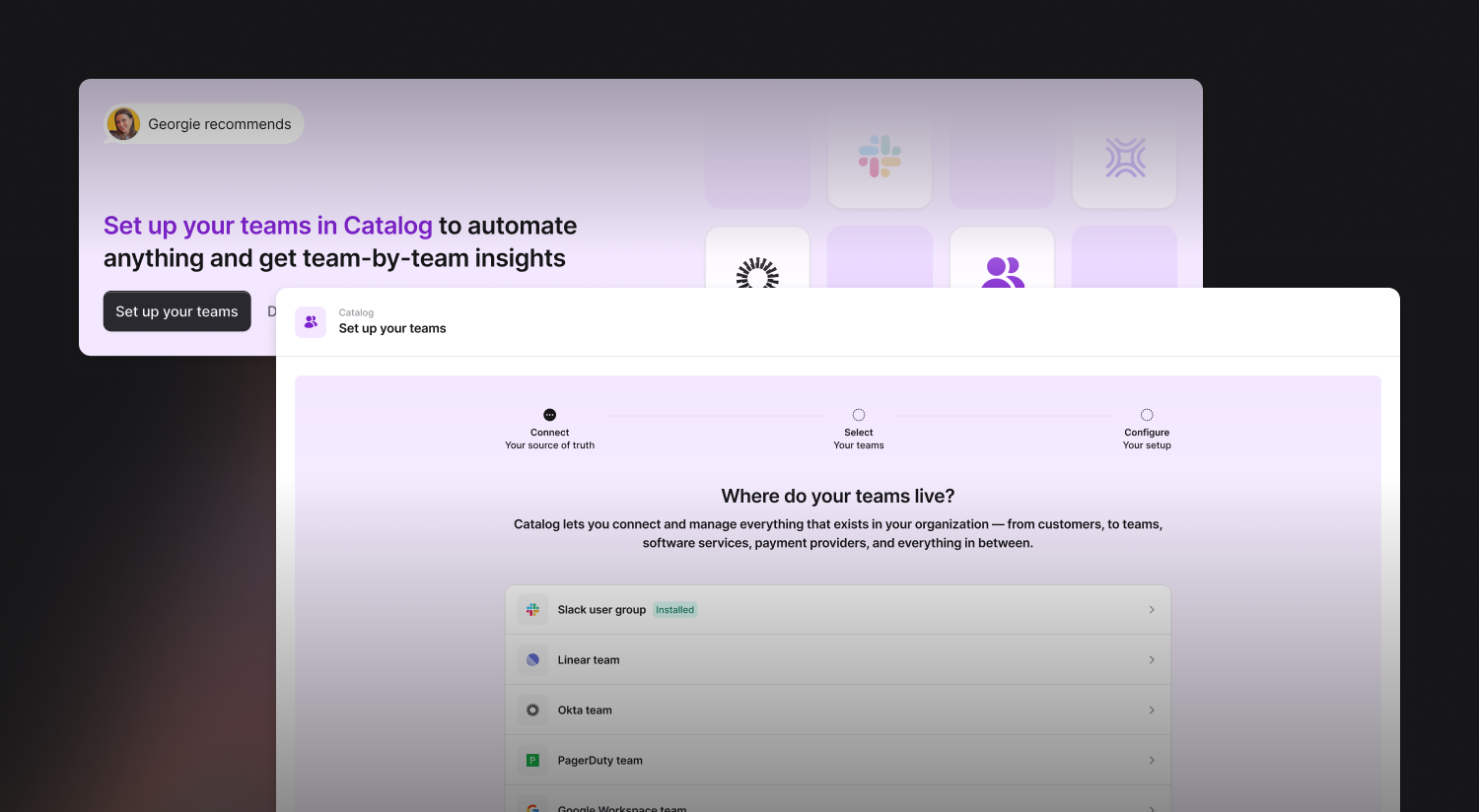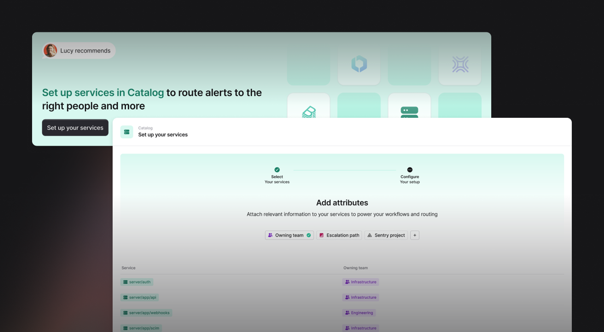 Teams and Services are only the first two layers in building a powerful Catalog, and what makes sense to layer on next depends on your tooling, systems, and incident response process. You can see how our team use Catalog or get in touch with us via your customer Slack channel to learn more.