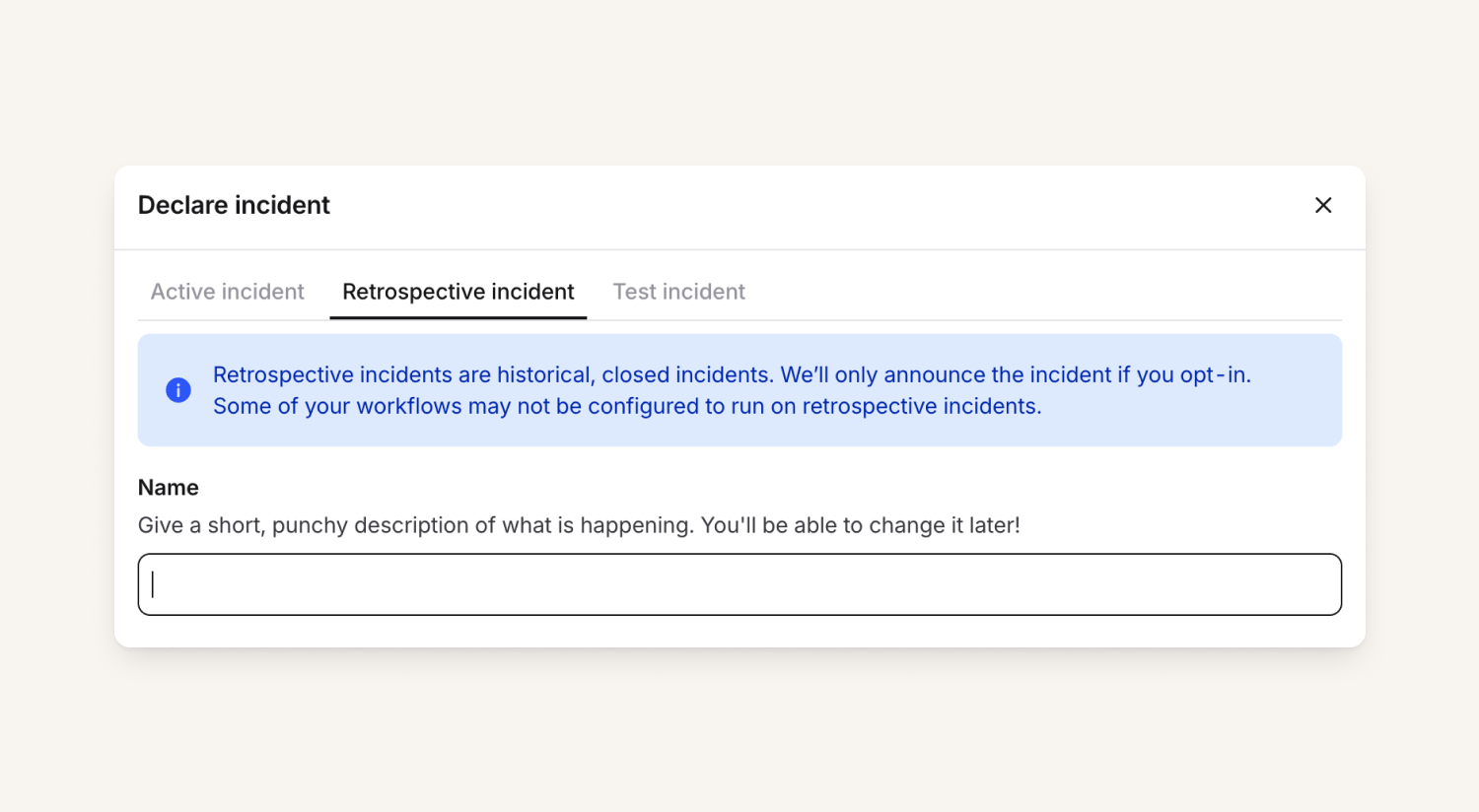 You can now declare an incident after it has happened in Microsoft Teams with retrospective incidents. This can be done in the dashboard, and you can choose whether or not we announce it, which means you don’t have to worry folks unnecessarily.