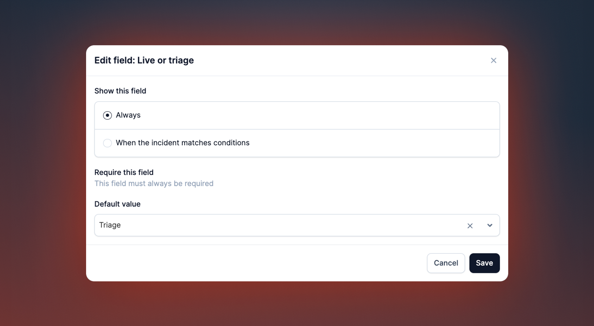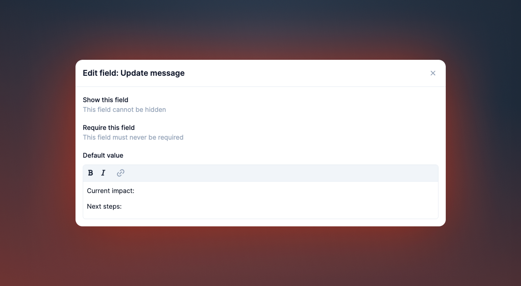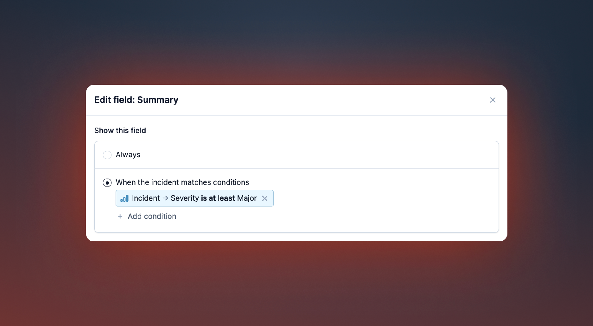 You can now control exactly which fields will show on each form, and see the impact of those changes in a real-time preview. For example, you can hide the summary field when declaring an incident unless it’s at least a Major severity.