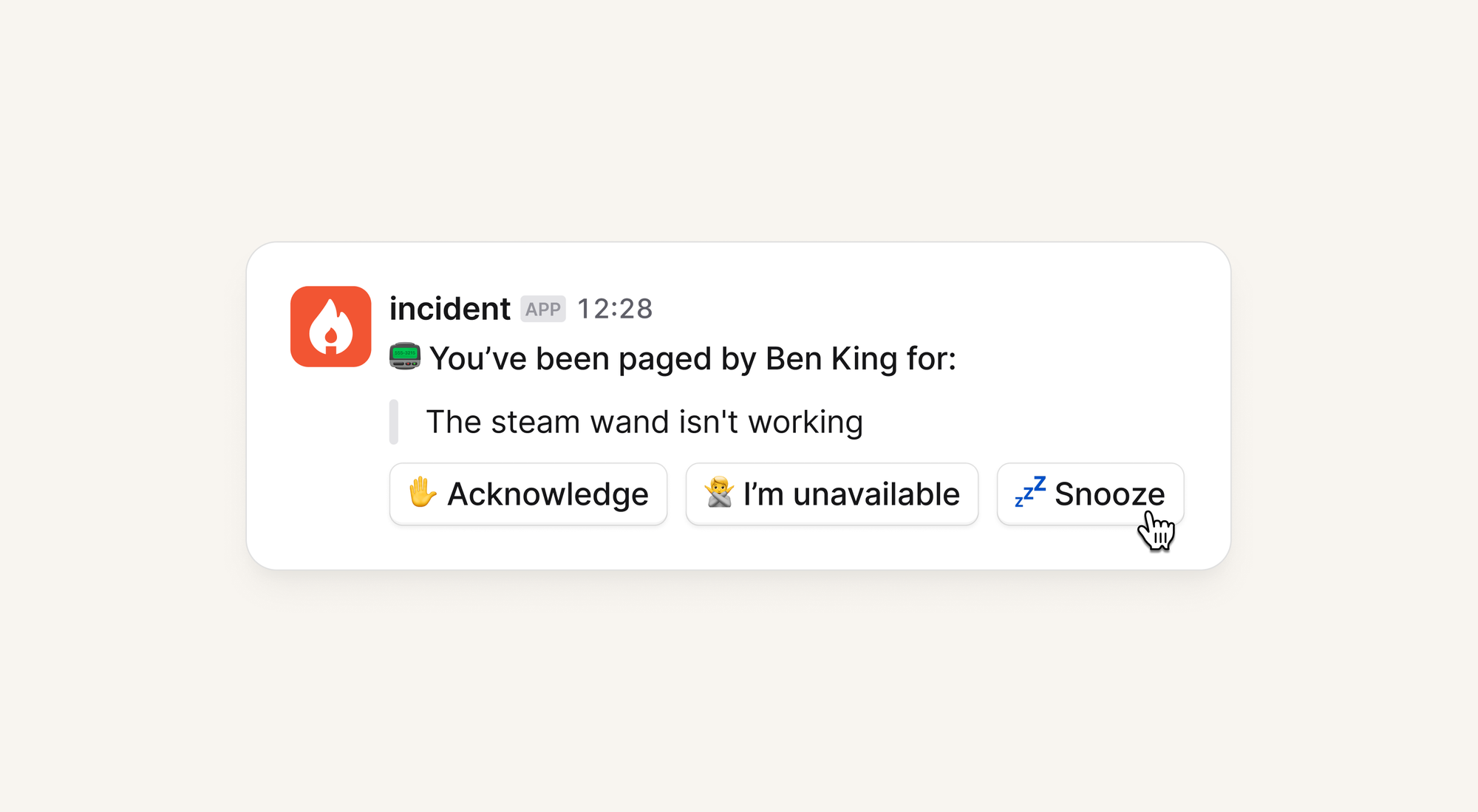 Responders can now snooze escalations to say "I've seen this, but I can't act on it right now — remind me later."