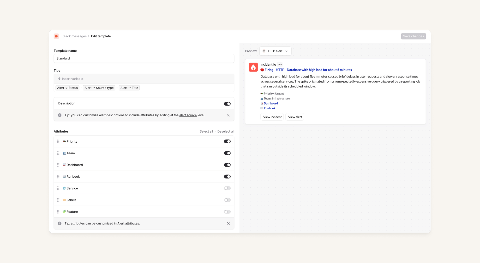 Now, you can define alert message templates to pick the attributes that matter, hide the noise, and make sure the right context is front and center - across all alert messages! This applies for the following message types: