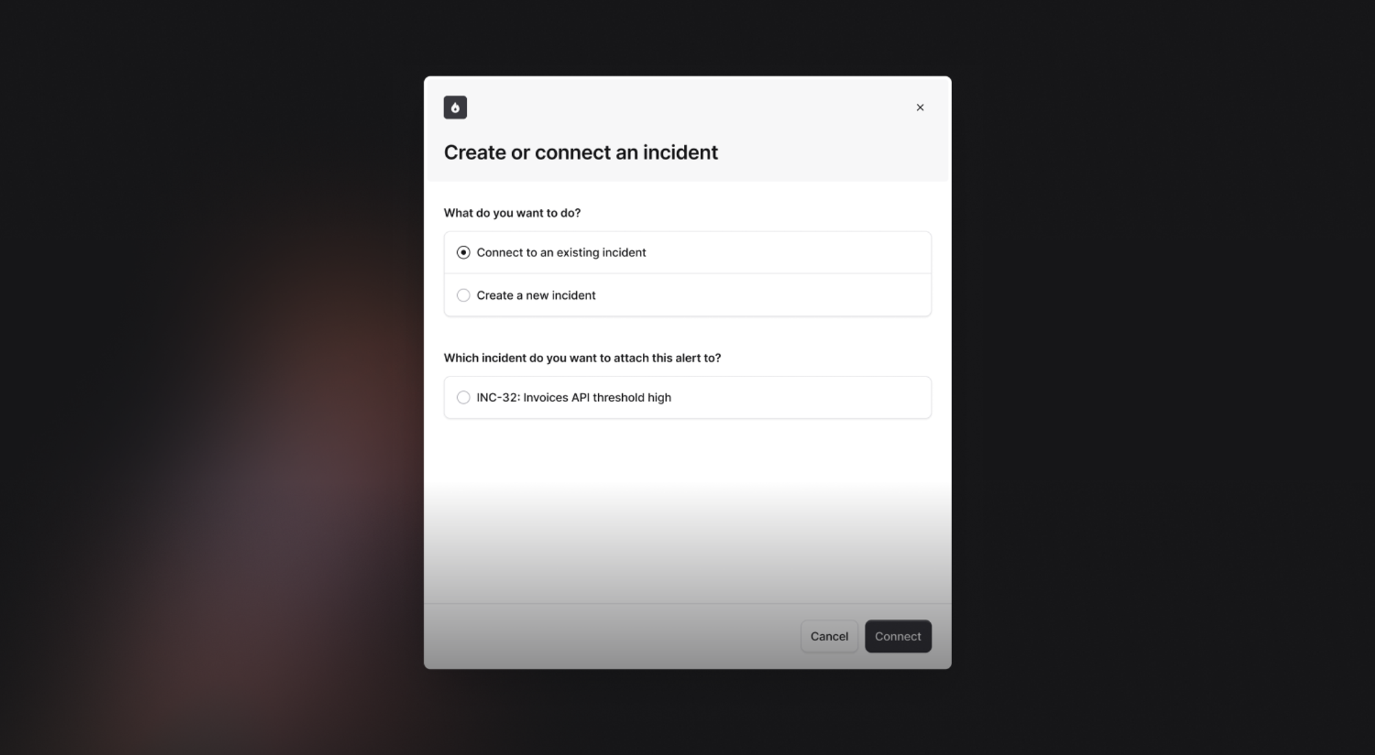 Previously, this required you to manually create an incident, where you’d lose the context of the alert. Now, you can declare an incident straight from an escalation, or connect the alert to an incident that’s already live from the same alert route. When you create an incident, we'll use the incident template from the route which the alert came in through.