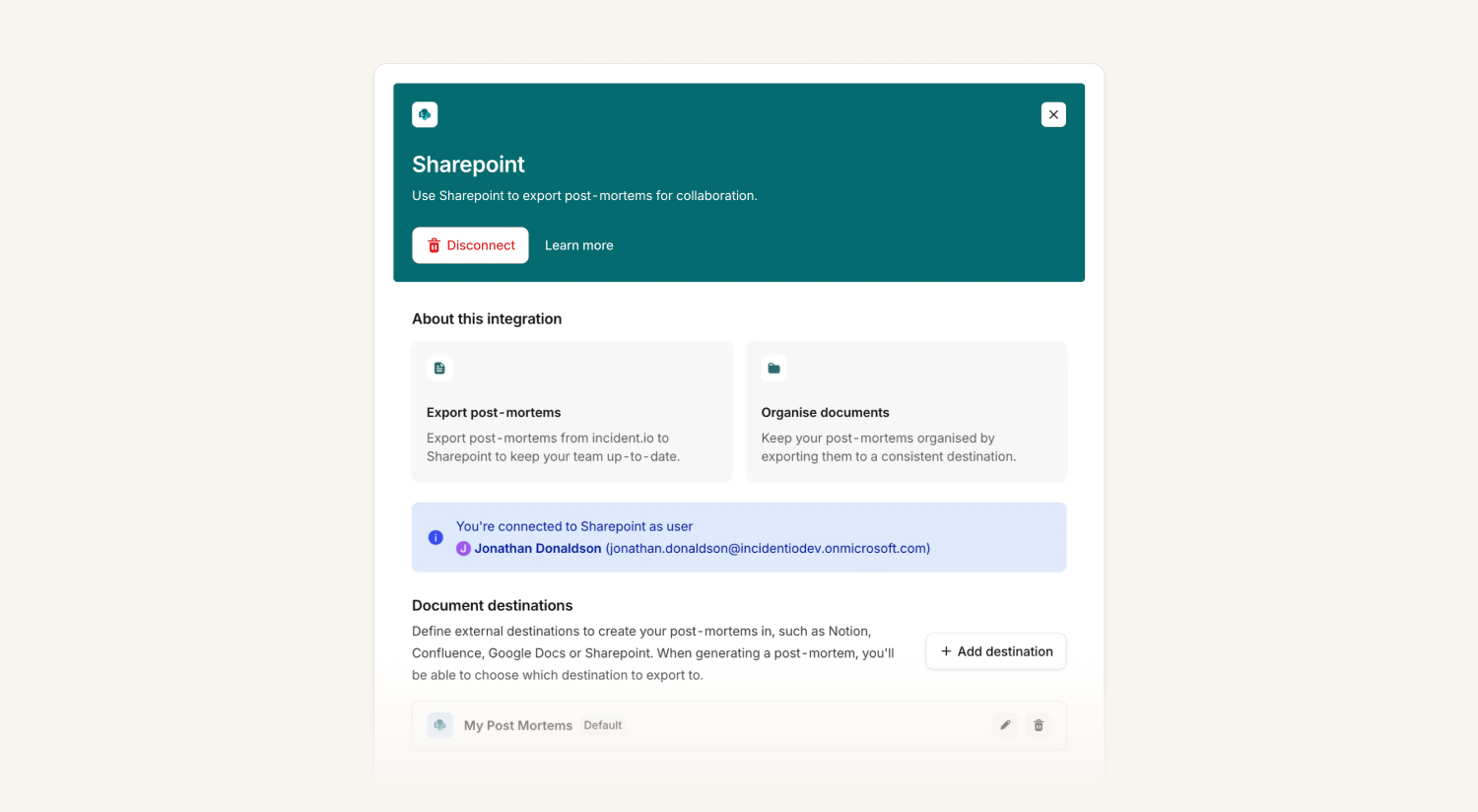 You can now export post-mortem documents as .docx files to Microsoft 365 SharePoint. For full details on how to get this set-up, please check out our help article.