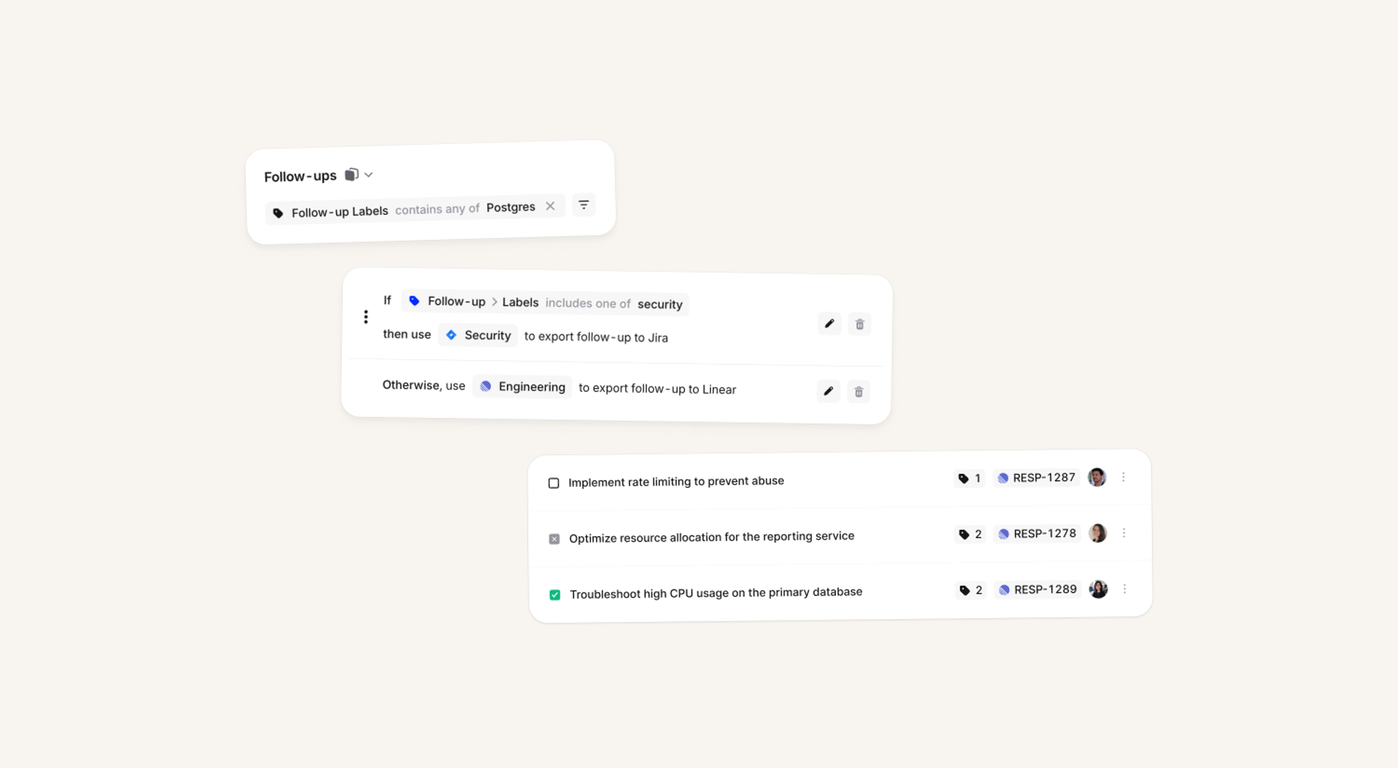 Previously, you could only export follow-ups to Jira directly from Slack. Now you can export to any connected issue tracker without leaving your incident channel.