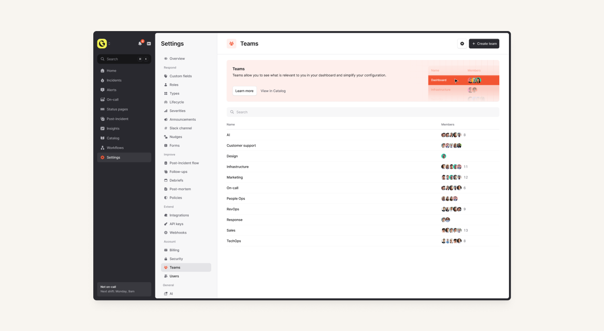 Having teams will also make your On-call configuration a lot easier with new features such as: