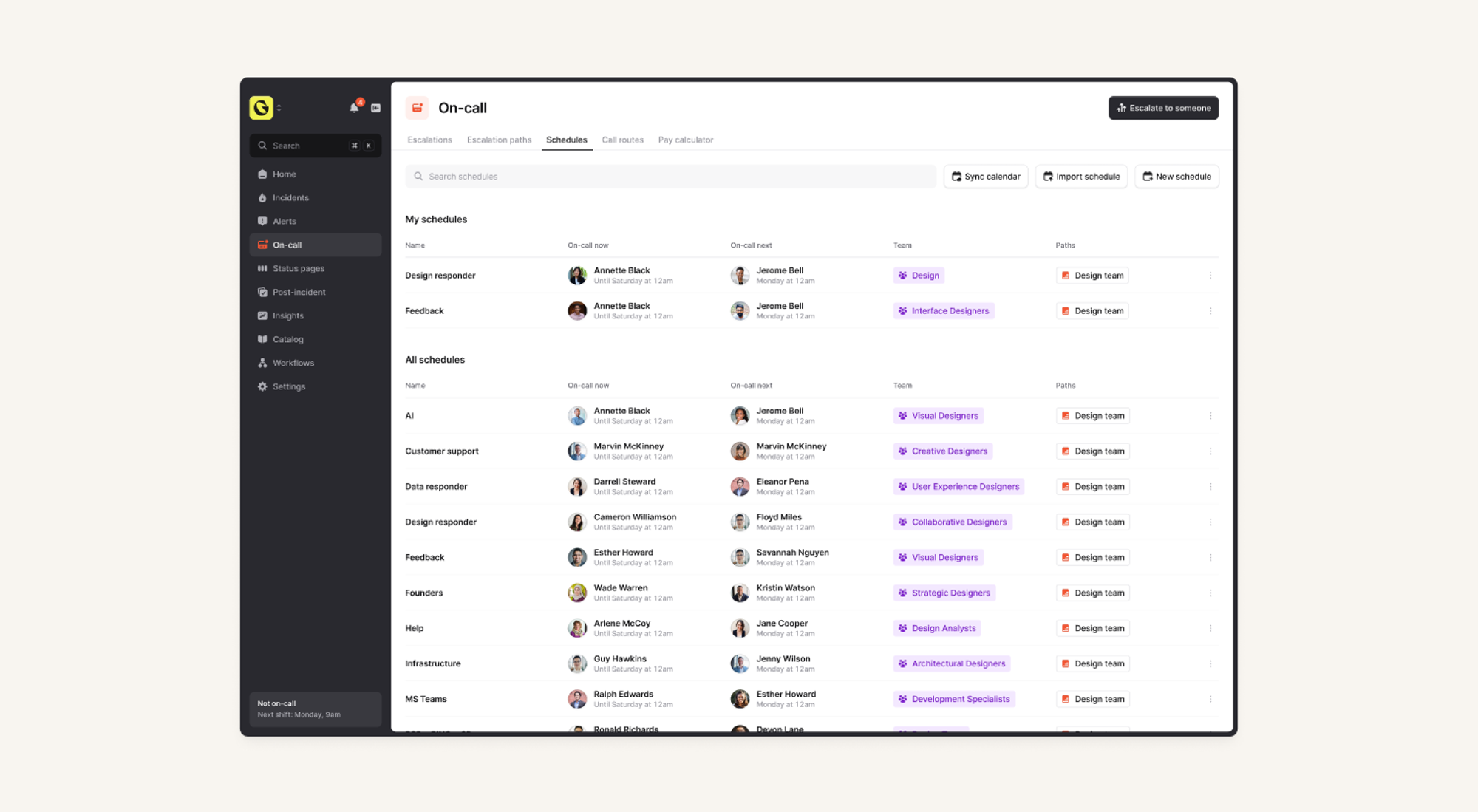 Easily connect escalation paths and schedules to teams to simplify your On-call configuration
