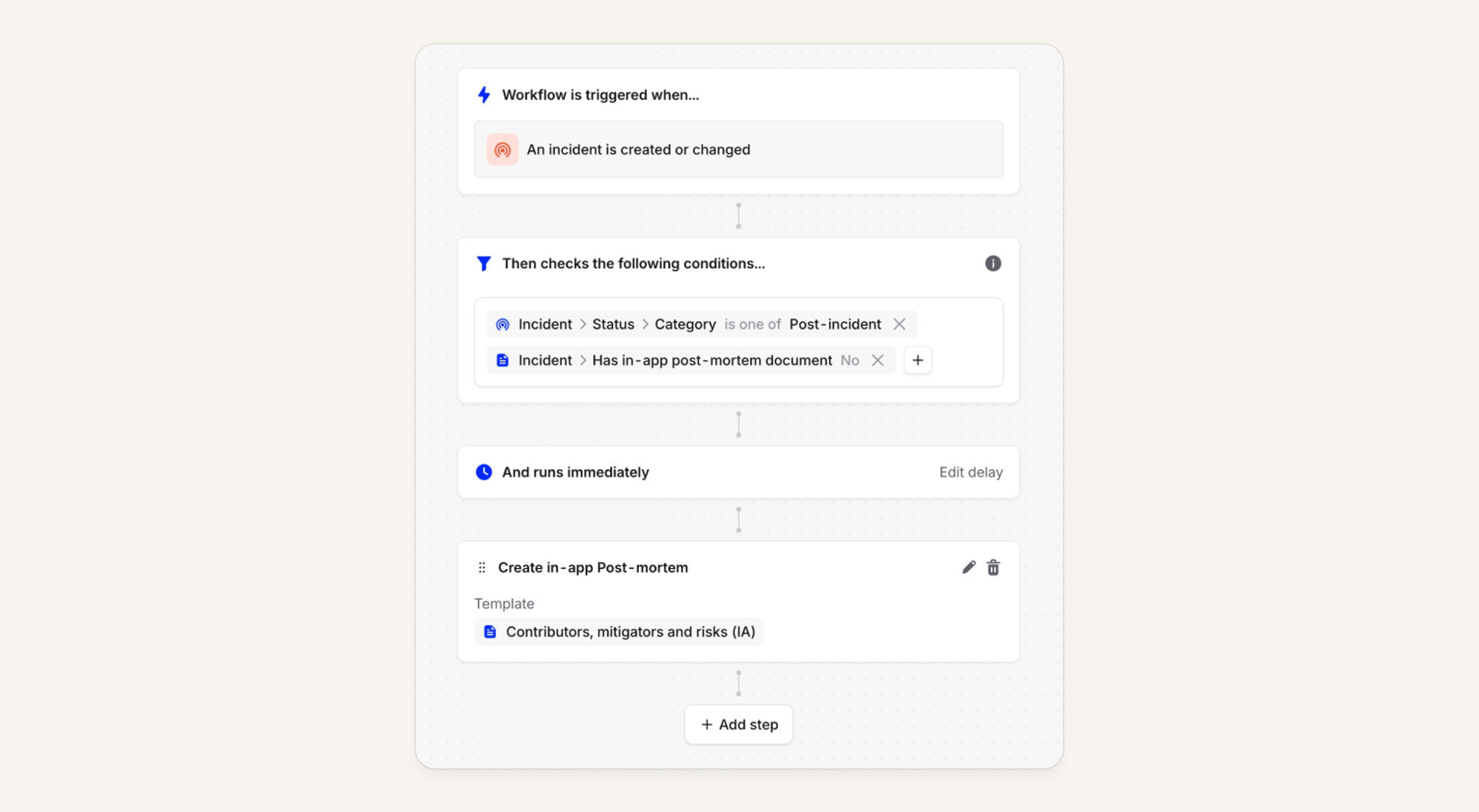You can now configure workflows to automatically create post-mortem documents. For those leveraging our AI-enabled templates, that means you can automatically get an AI generated post-mortem document!
