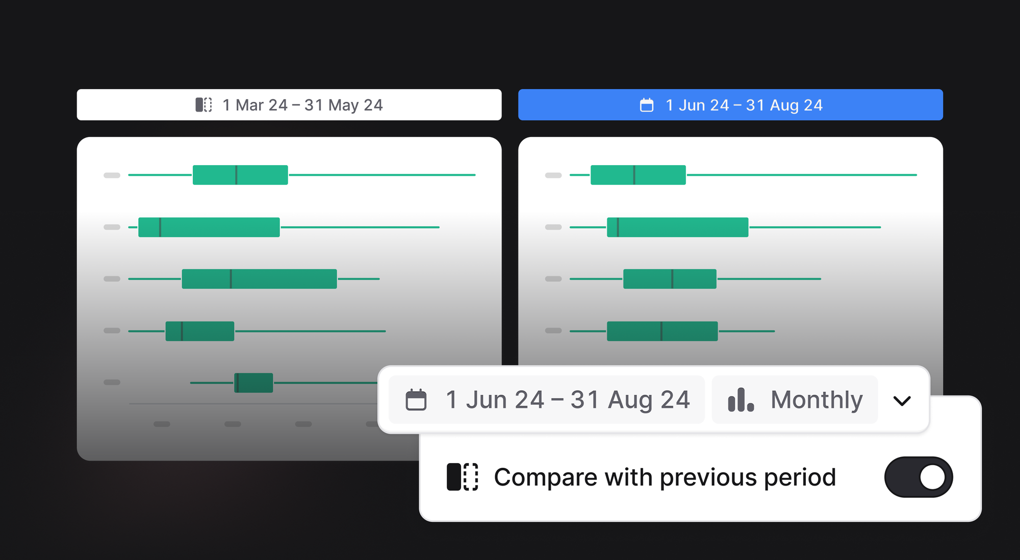 This week, we've enhanced Insights with a new side-by-side view, enabling you to compare data from two time periods in a single dashboard.