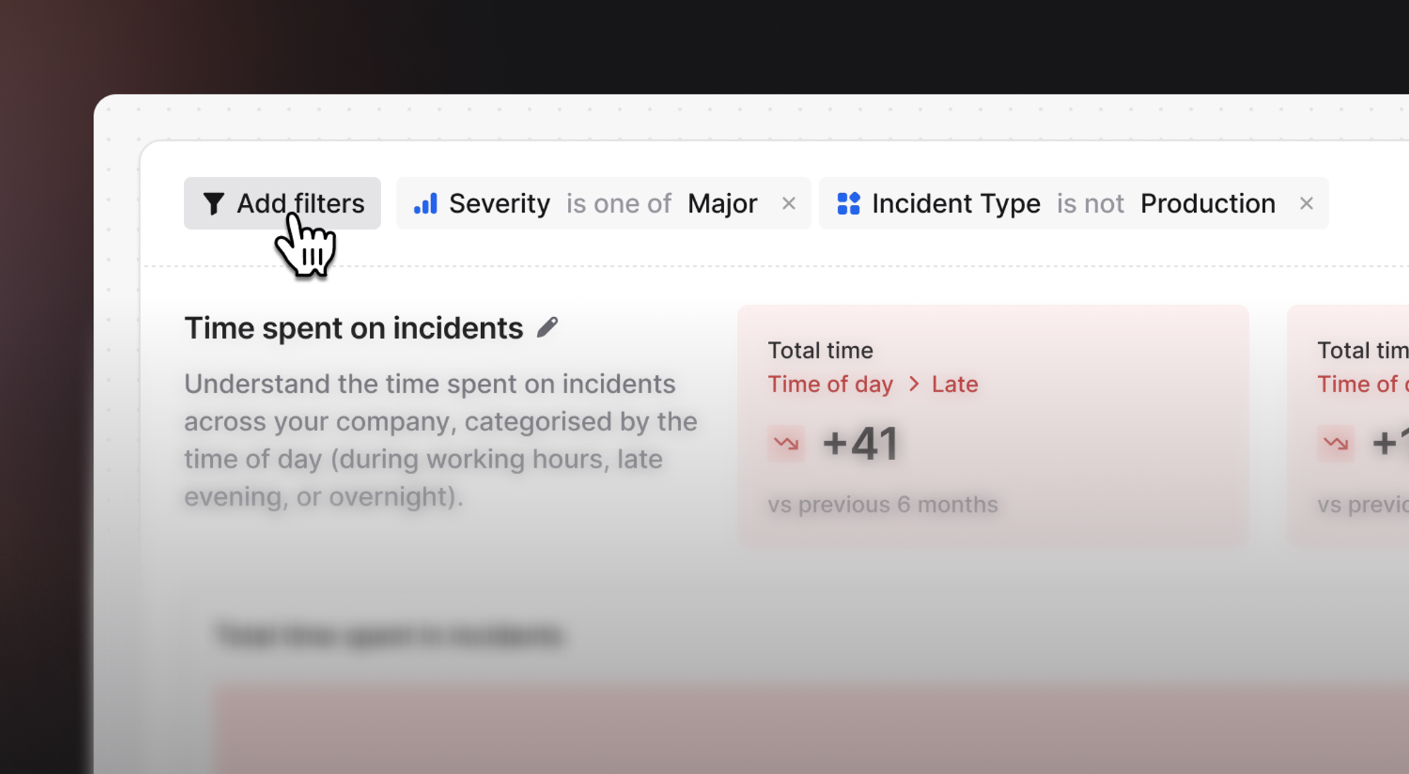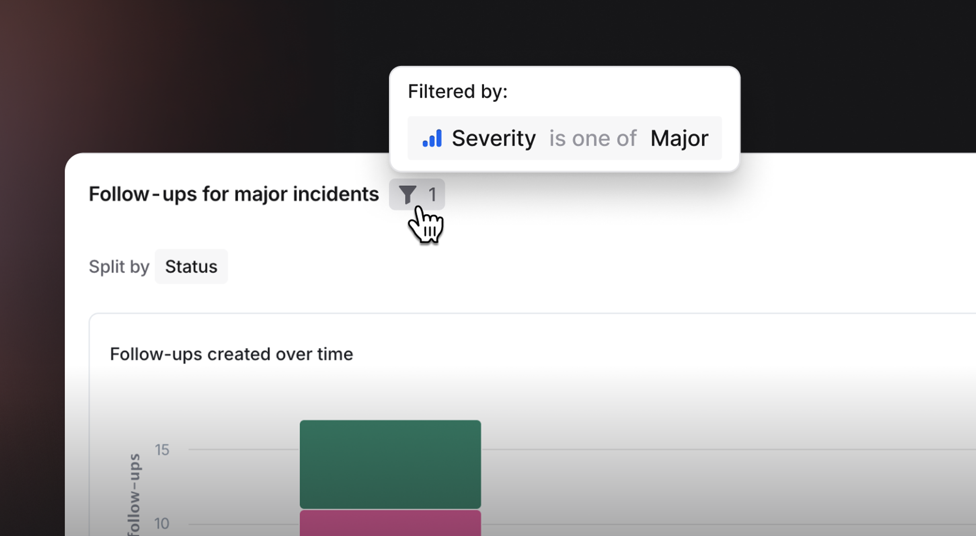 This new feature opens up the ability to build a custom dashboard that displays the same chart multiple times but filters differently each time. For example, you can now build a custom dashboard that breaks down follow-up creation by status and shows a panel each for major and minor incidents.