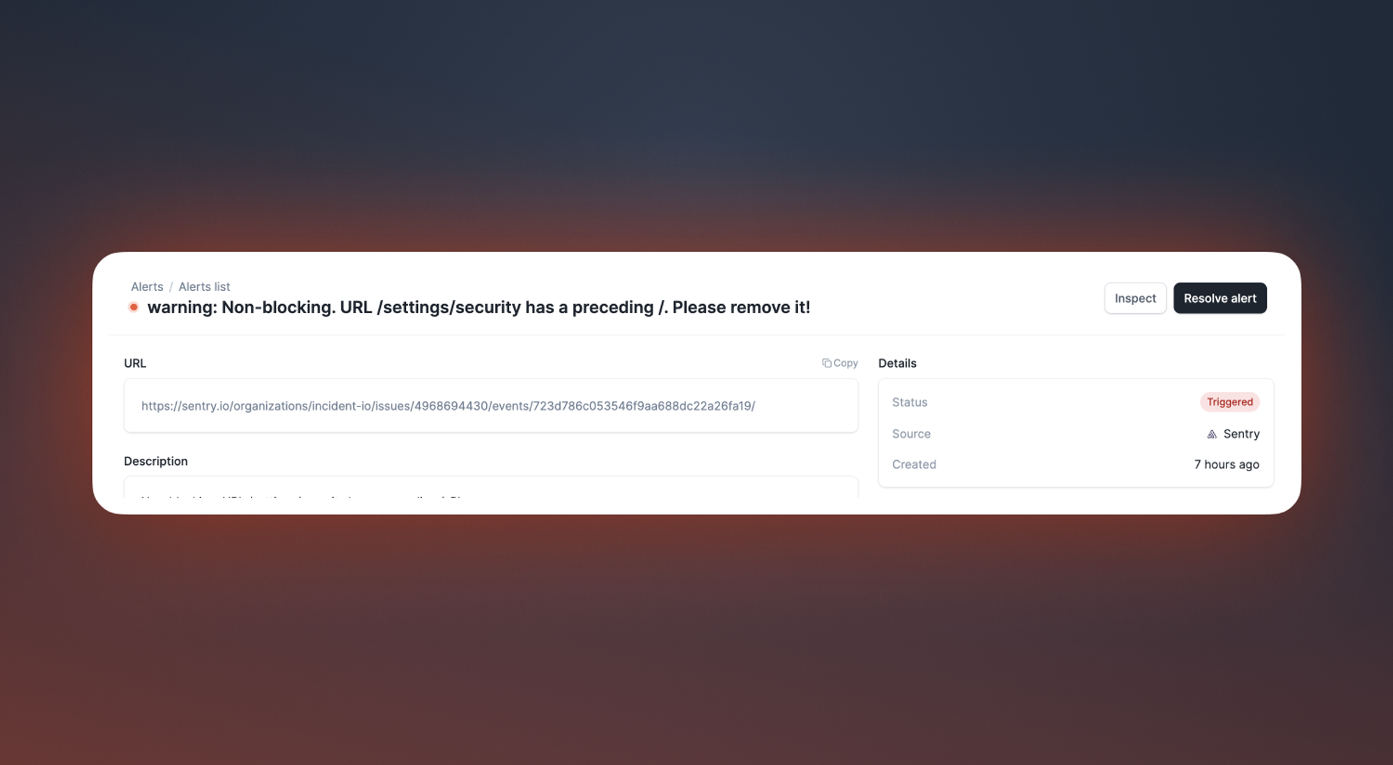 While we were at it, we gave the detail view for Alerts a bit of a facelift to make it a bit easier to parse information. For example, we pulled the alert source URL to its own space in the page instead of being hidden in the header and pulled related incidents into the right navigation. Hopefully it should be easier to digest when reviewing your alerts moving forward! ✨