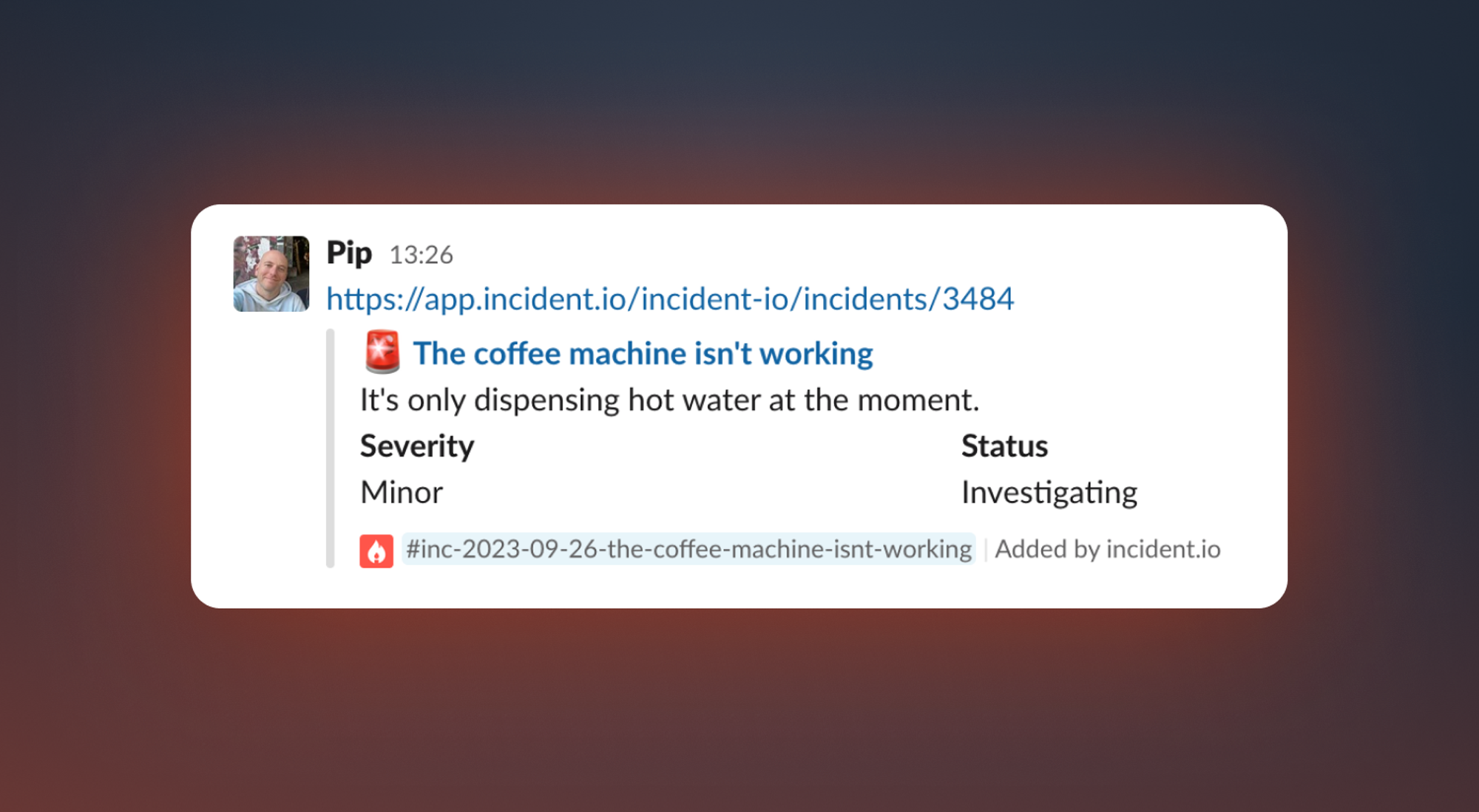 When you create an incident from a message, we will unfurl the source message in the incident channel