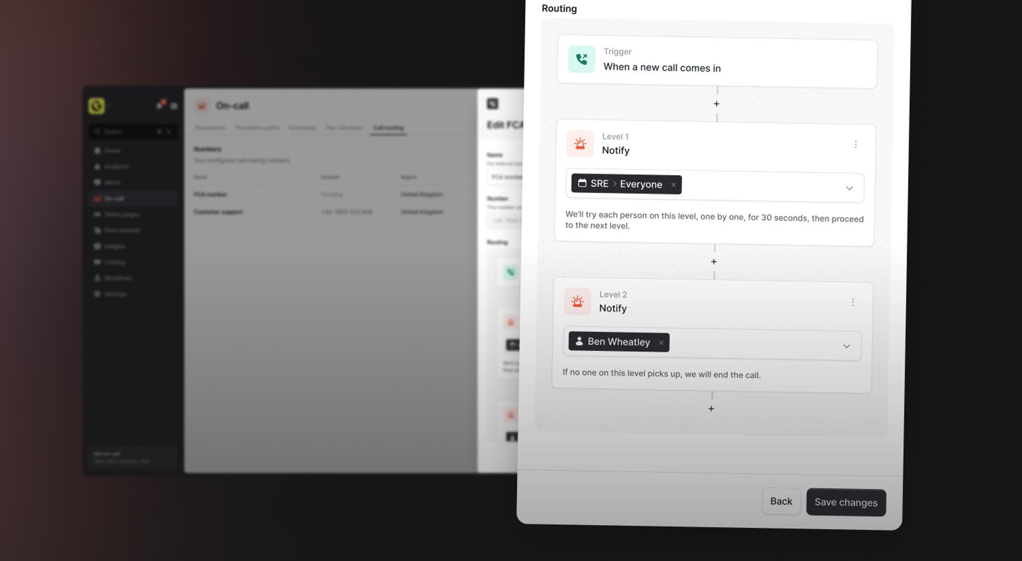 When someone calls, you want to be sure someone picks that call up. Just like with our escalation paths, we support round-robin across an entire schedule and multiple levels for call routes. If one person declines the call or doesn’t pick up in time, we’ll move on to the next one until the end of your path.