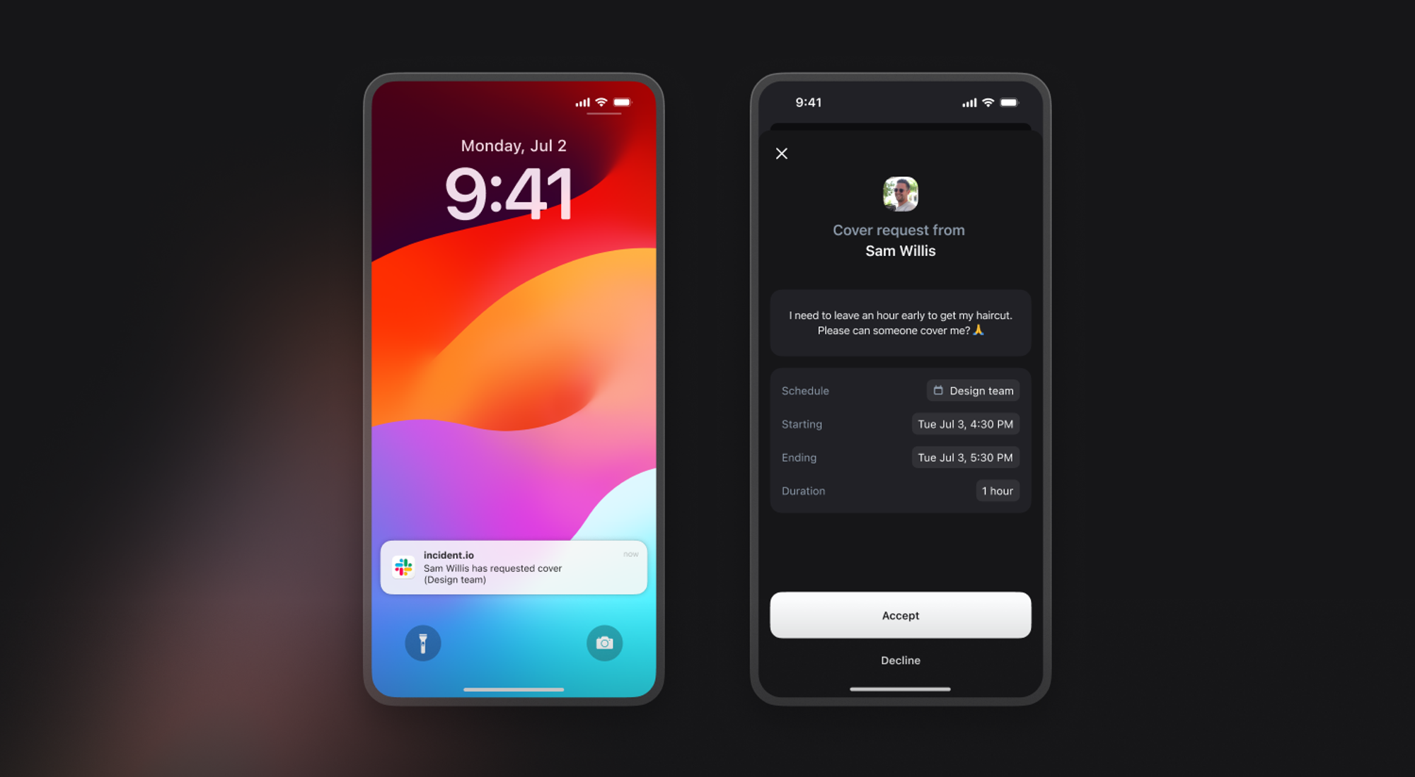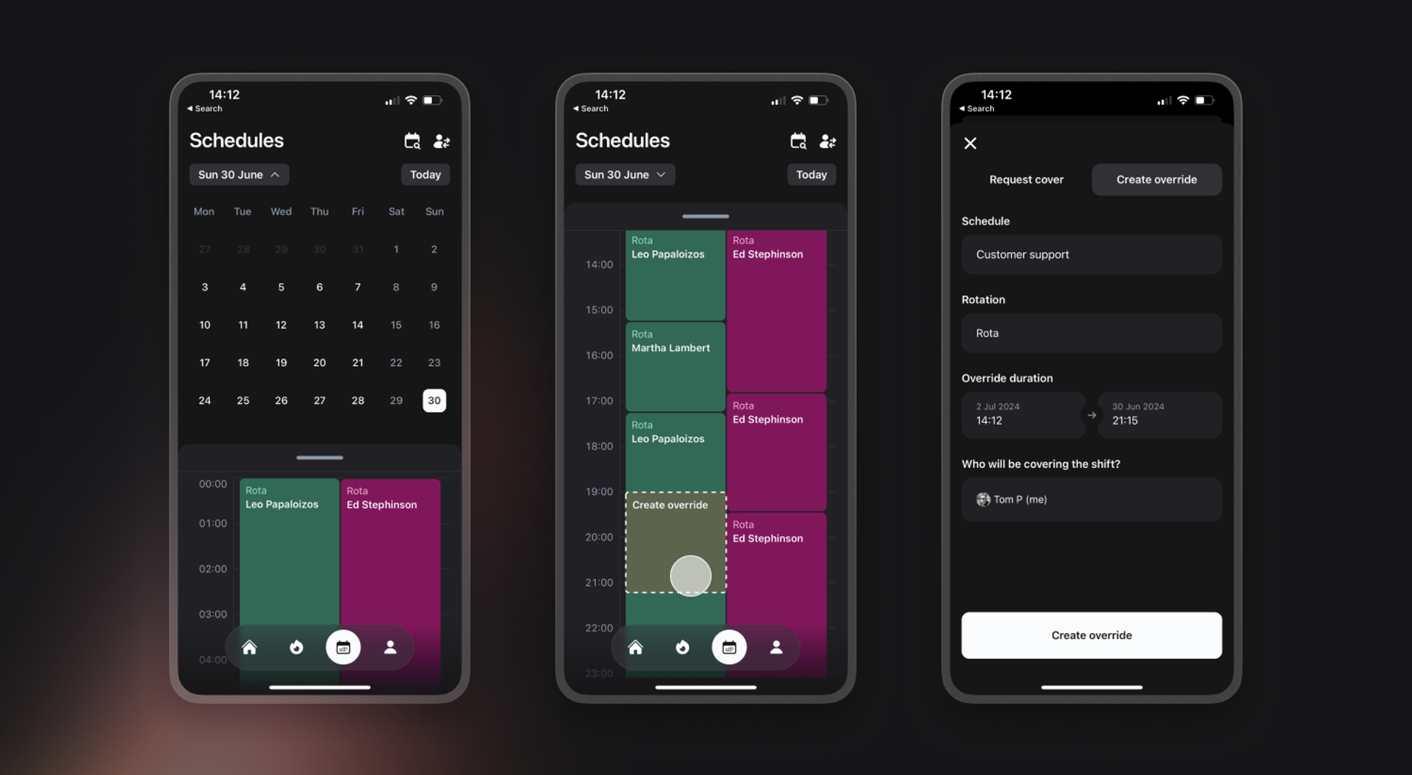 In addition to viewing schedules, we’ve made it easy to send on-call cover requests and create overrides.