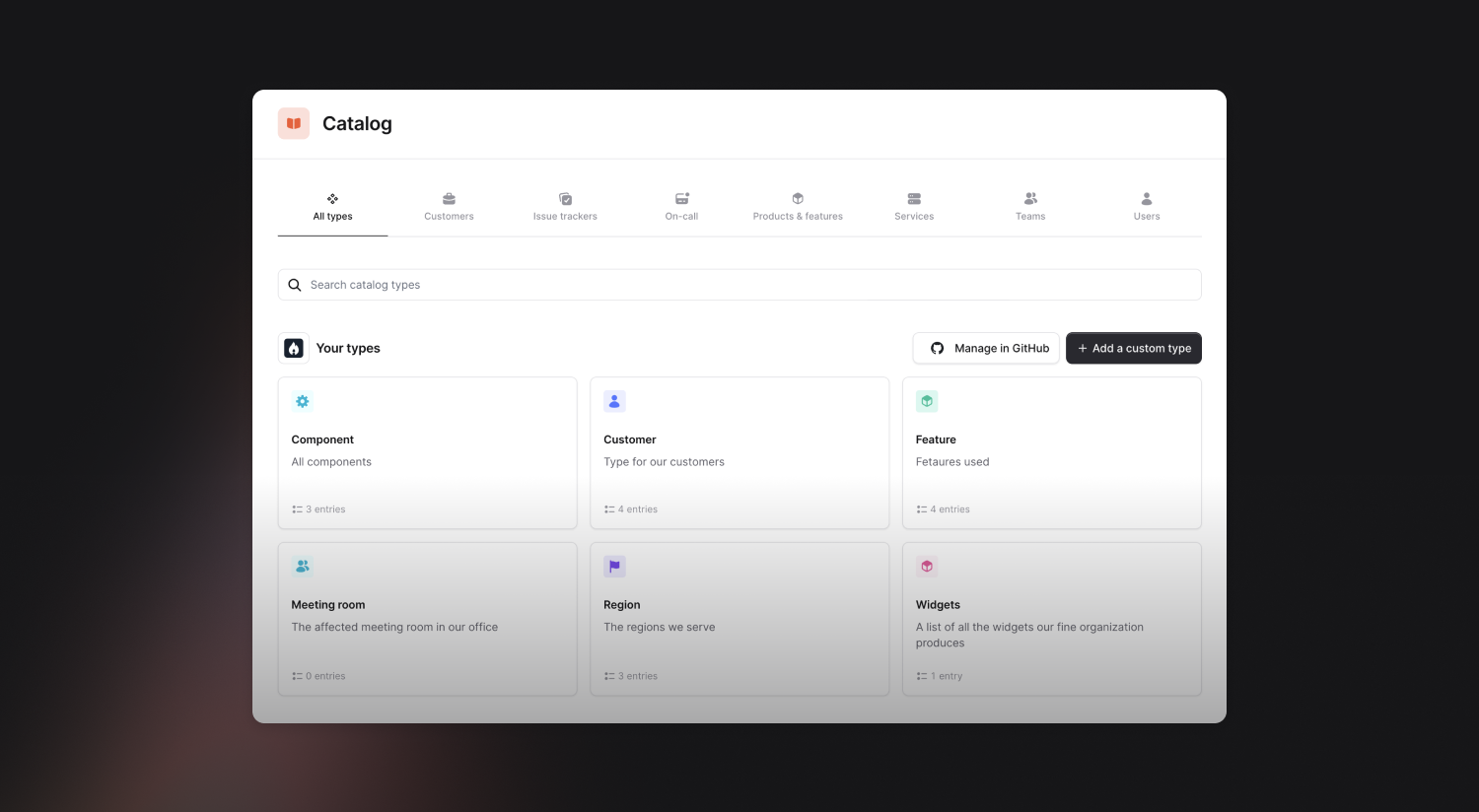 Catalog types can now have Categories which you can set when editing a catalog type. These enable you to group your catalog types in a more useful way, and navigate to what you're looking for.