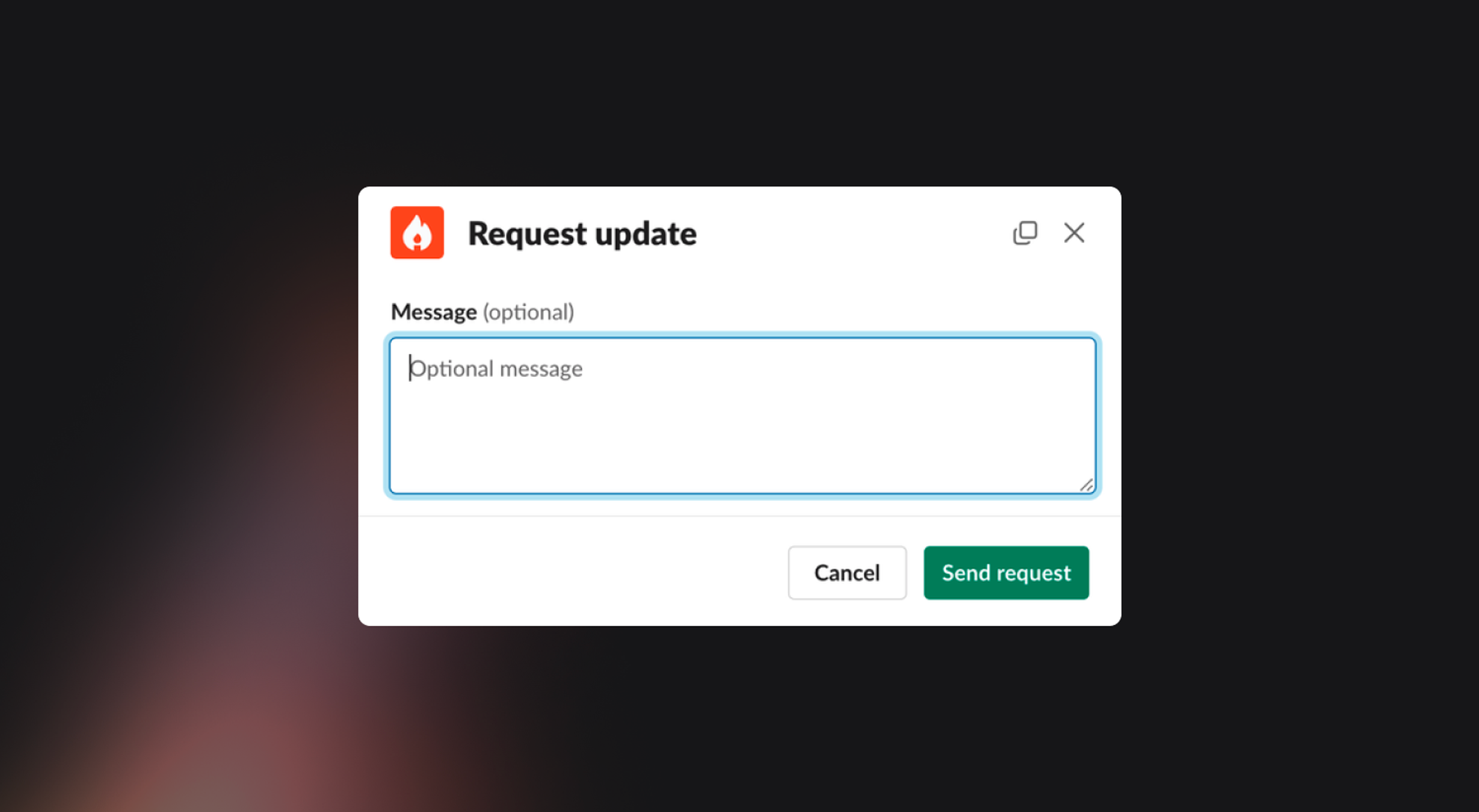 It was previously possible to request an update to an incident from within the dashboard, and now we’ve brought that experience to Slack with /inc request update.