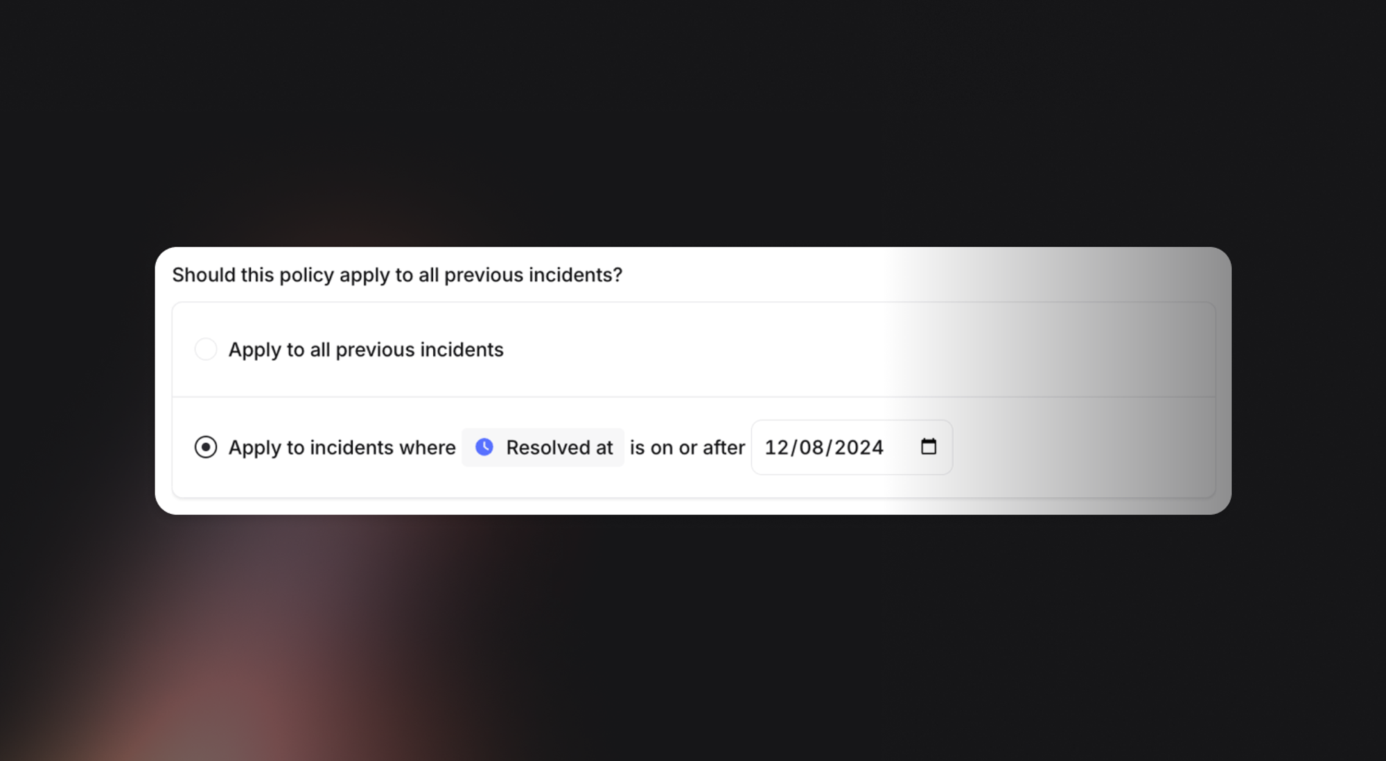 Now, you have more control. You can choose which incidents a policy should apply to based on the incident's timestamp. This means you won’t be unexpectedly bombarded by unwanted policy violations caused by old incidents.