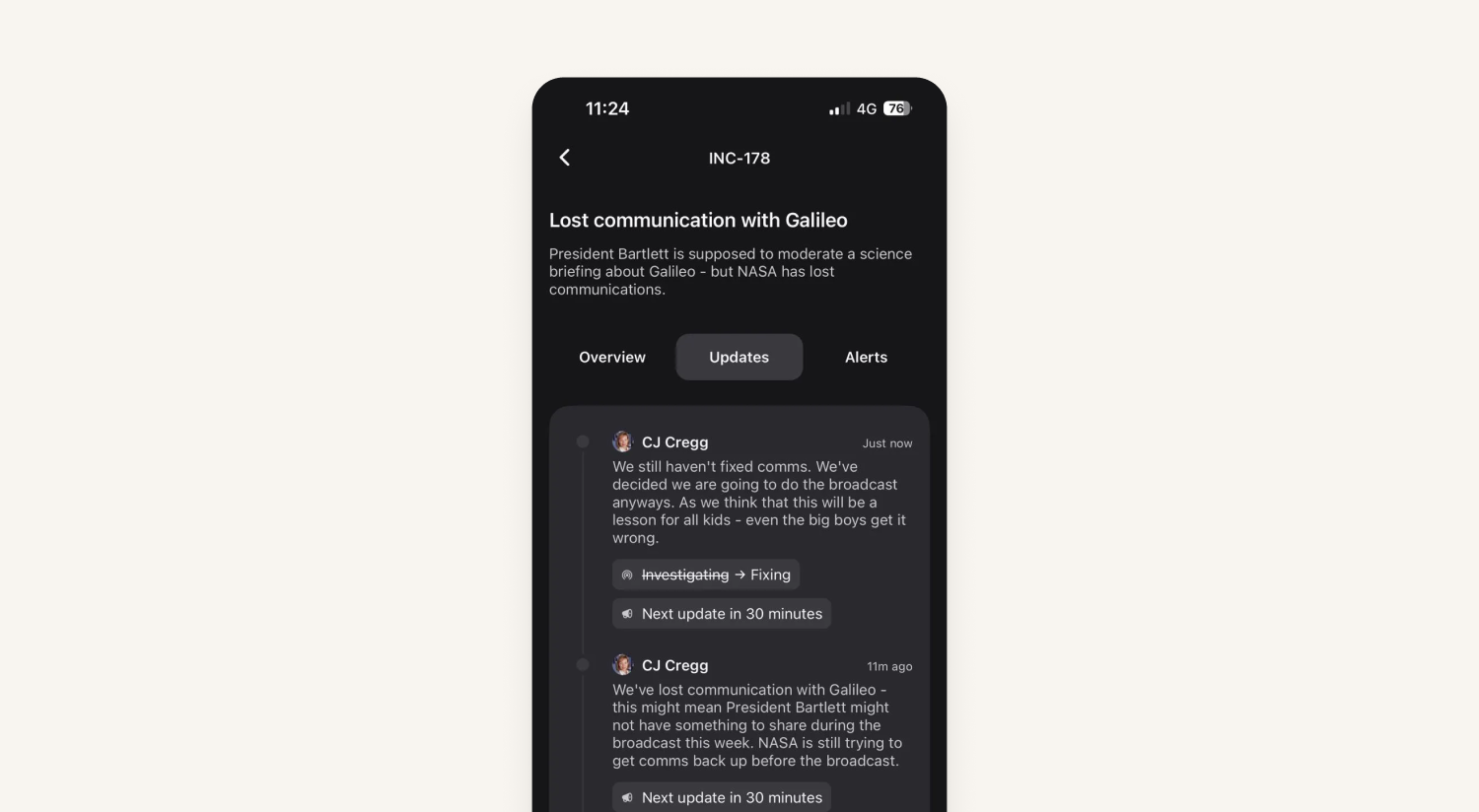 We now send push notifications for incident updates! This is great if you’d like to get updated about certain incidents via our app versus other channels like email or SMS. Now, just tap on the push notification and you’ll be taken directly to the new Updates tab within the incident for details.