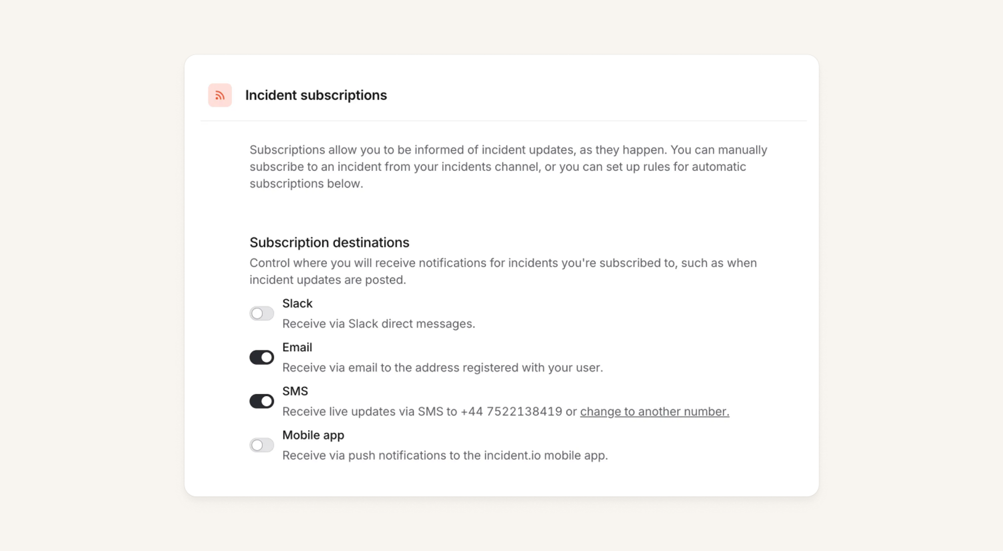 Good news is you do not need to be an On-call user to benefit from these updates. All you have to go is go to your user preferences, under Incident subscriptions, to enable mobile notifications.