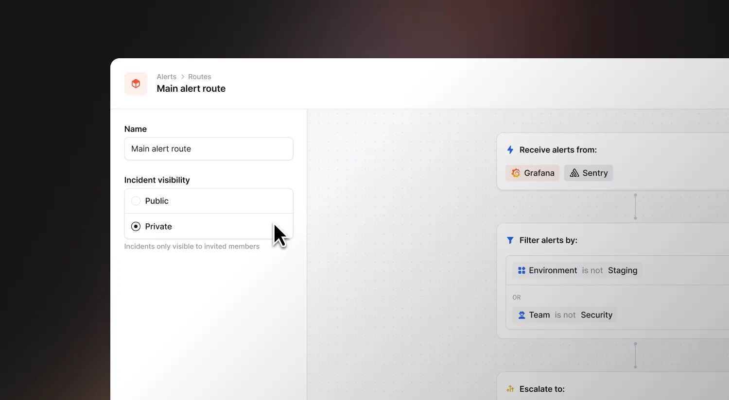 Now, Private Incidents from Alerts streamlines this process by allowing you to configure alert routes to automatically create private incidents—saving time and ensuring sensitive incidents are kept secure from the start.