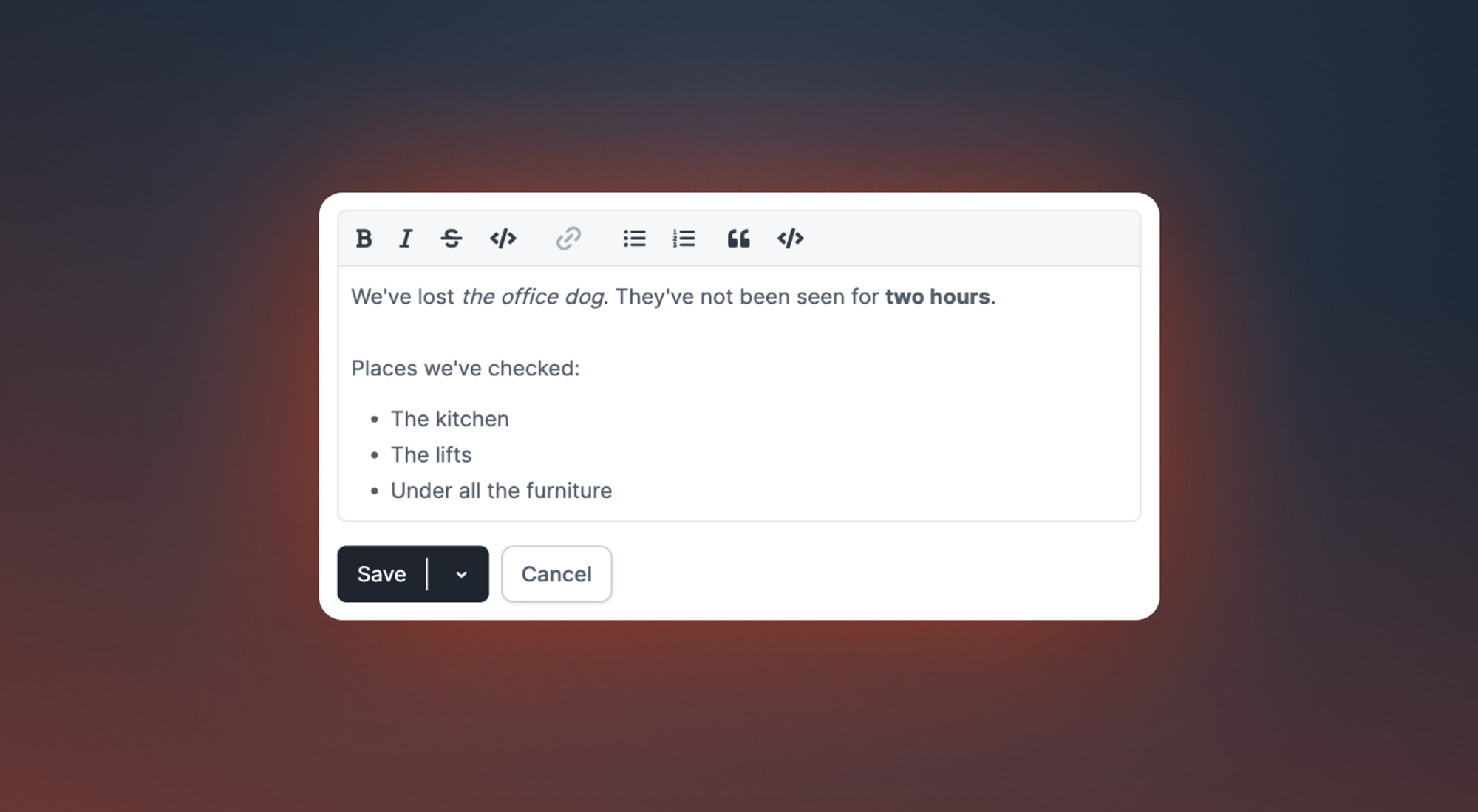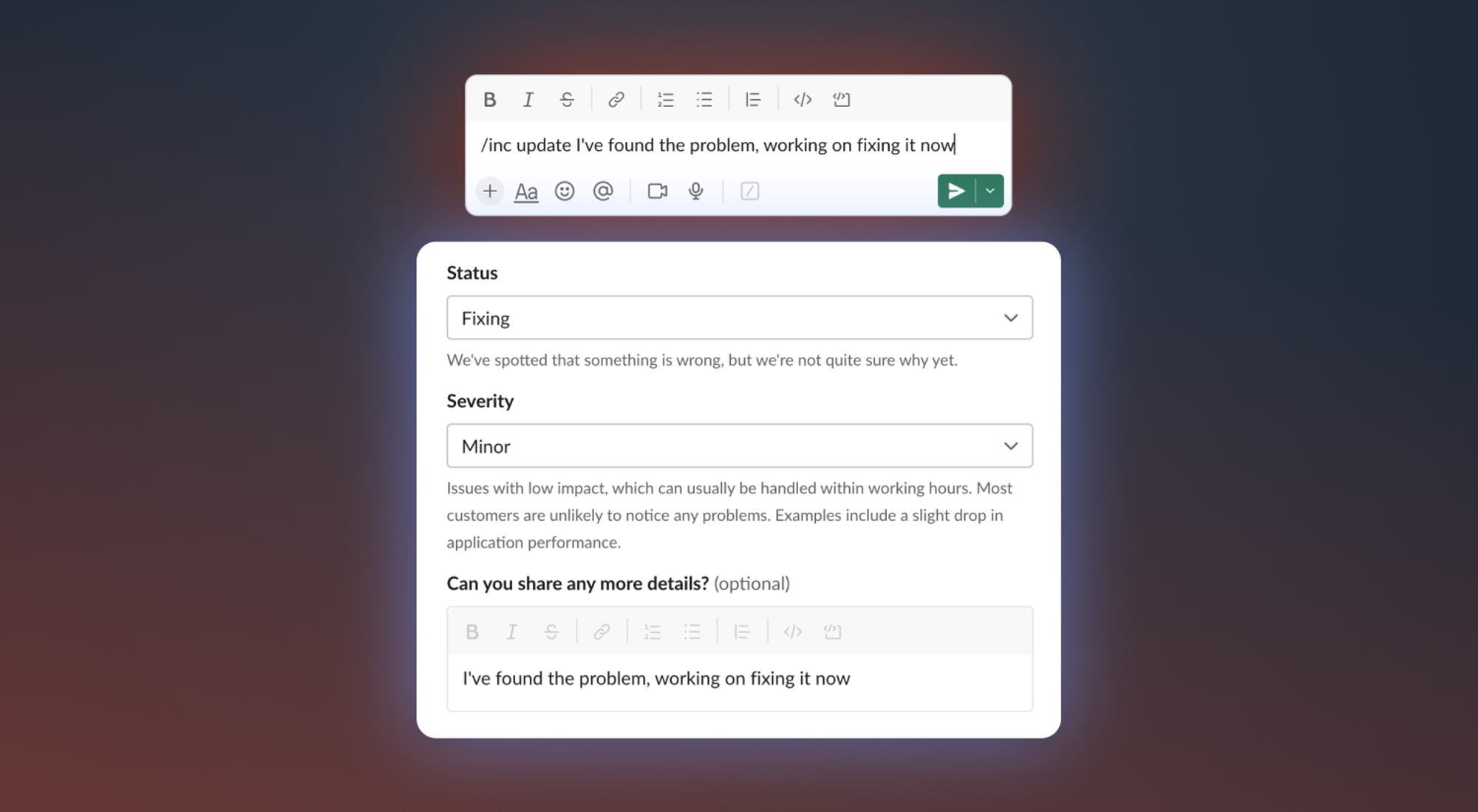 We’ve also updated the dashboard to support the same rich text features, so wherever you update your incident you’ll have access to the same formatting options.