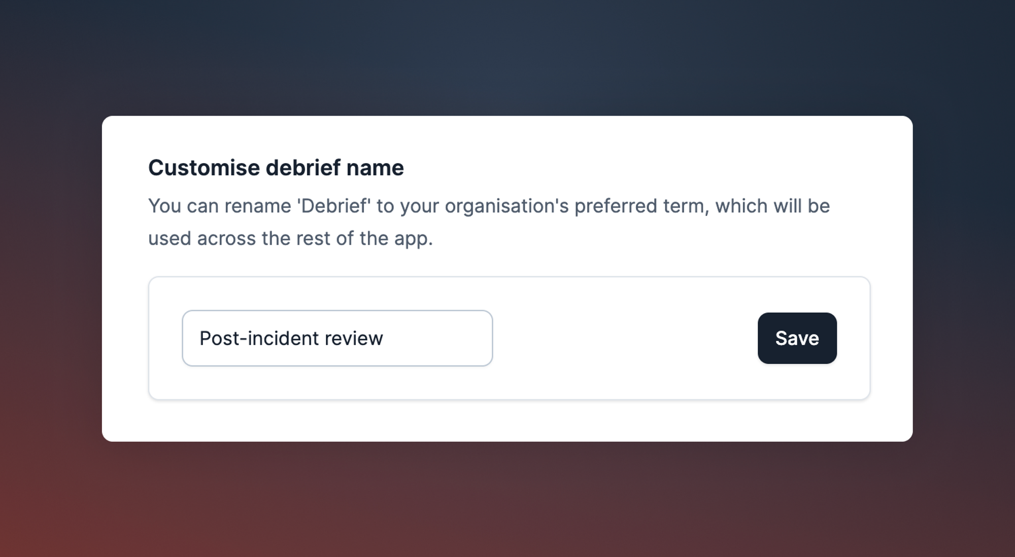 If you use a different word to represent a debrief meeting, you can now change the default. We'll then use your preferred name across our entire platform. Additionally, you can configure the default title and description we use when pre-filling a debrief event.