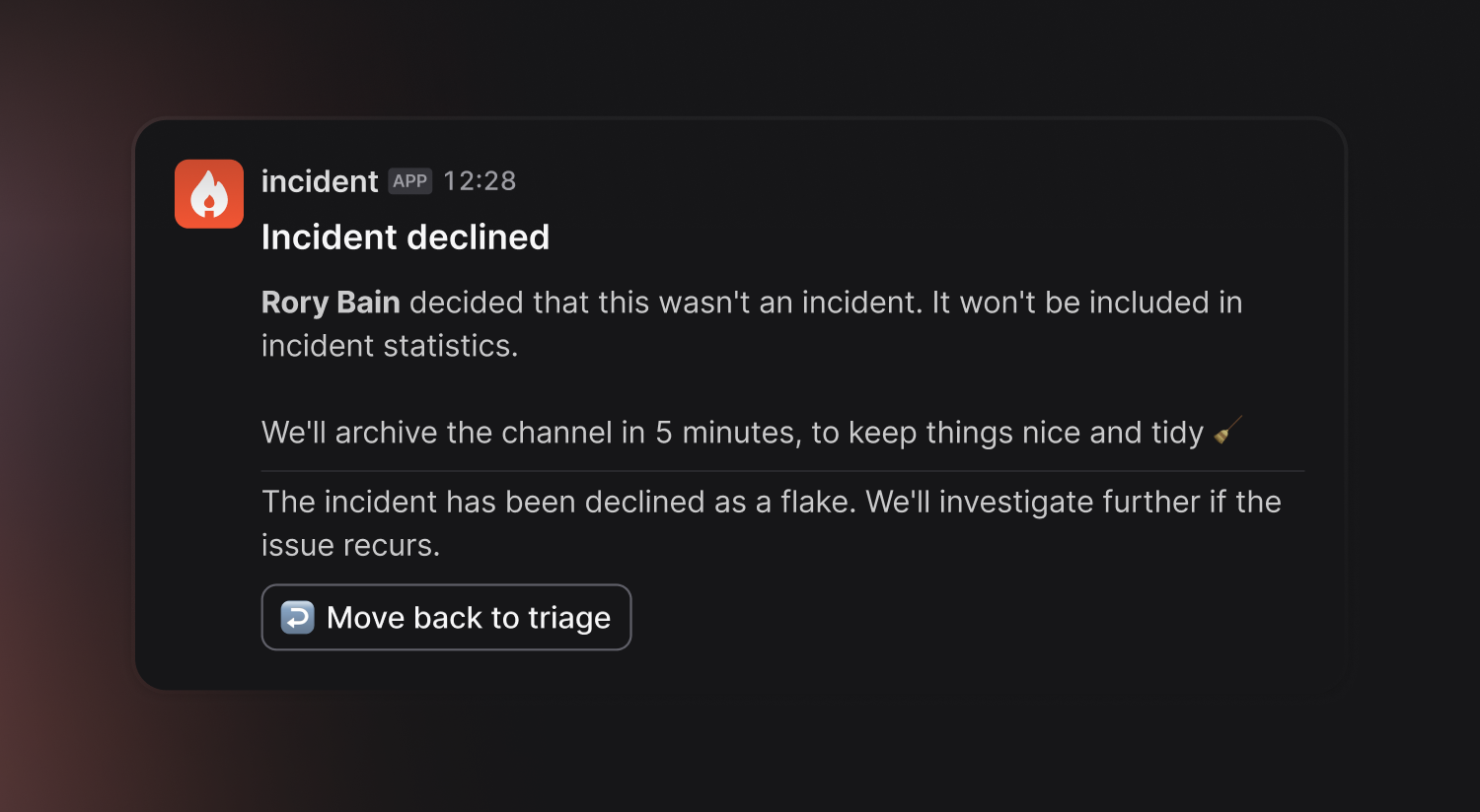 Once you've undeclined an incident, it goes right back to triage, giving you a second chance to decide on the best course of action. So go ahead, happy undeclining!