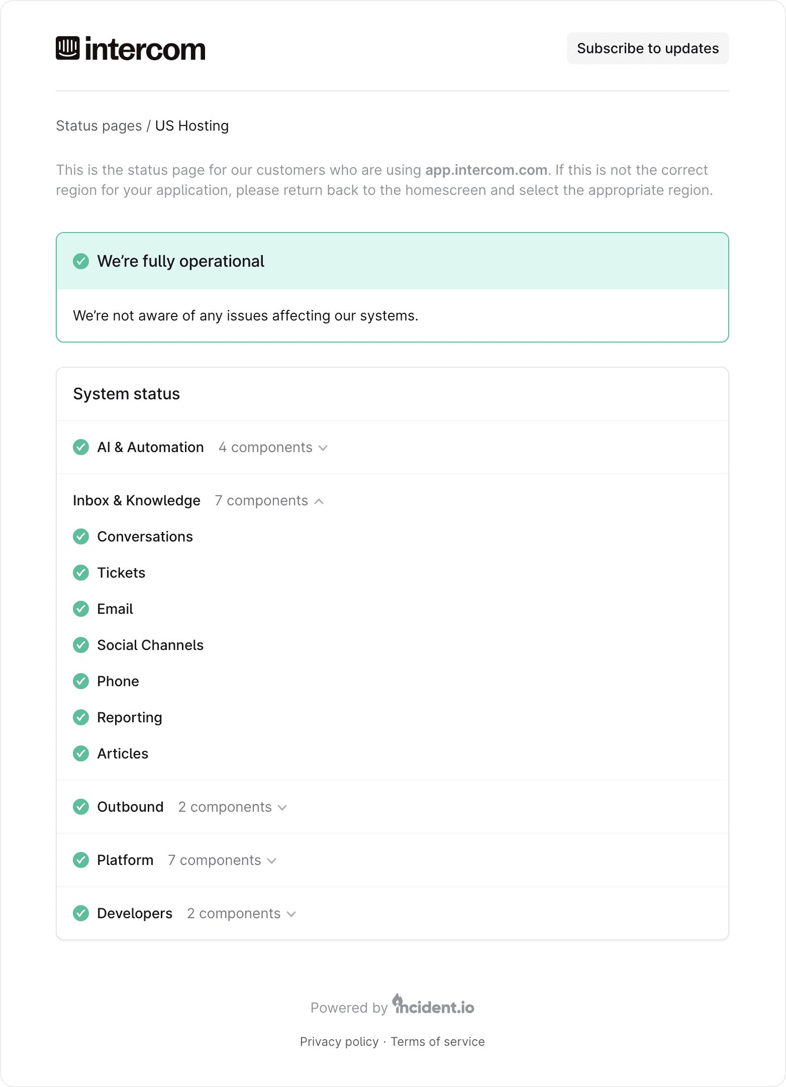 We’ve designed Status Pages to be clear at a glance. Thoughtful design touches ensure customers get the transparency they need and understand what’s happening, fast.